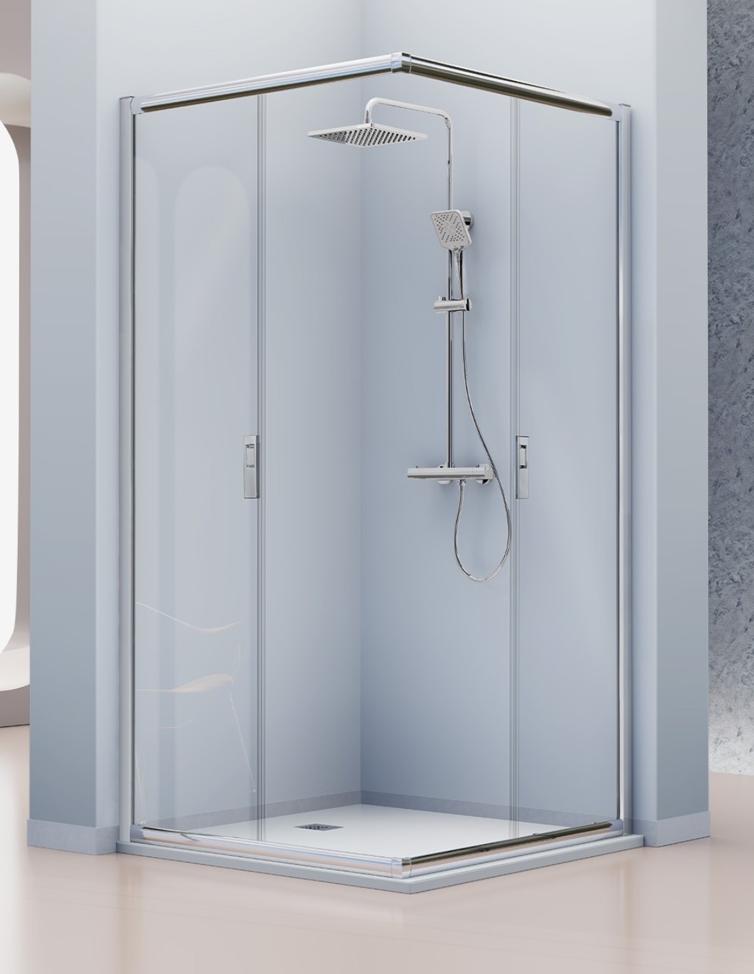 Mampara de ducha angular cromo 2 fijos + 2 correderas - SIENA. Vidrio Transparente de 6 mm de Kassandra. Tratamiento Antical Incluido.