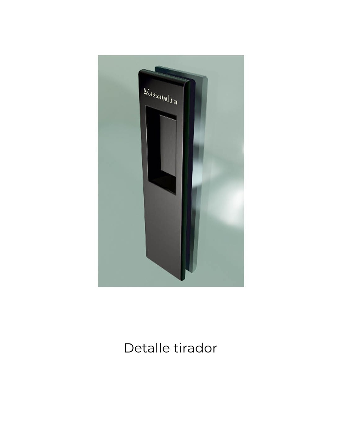 Vidrio templado de seguridad de 6 mm de espesor Transparente. En caso de rotura se parte trozos pequeños que no se desprenden de la estructura de la mampara. Tratamiento Antical "EasyClean" incluido en el precio.