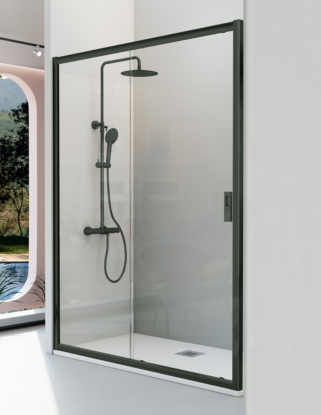 - Mampara de ducha negra 1 fijo + 1 puerta corredera - SIENA de Kassandra.