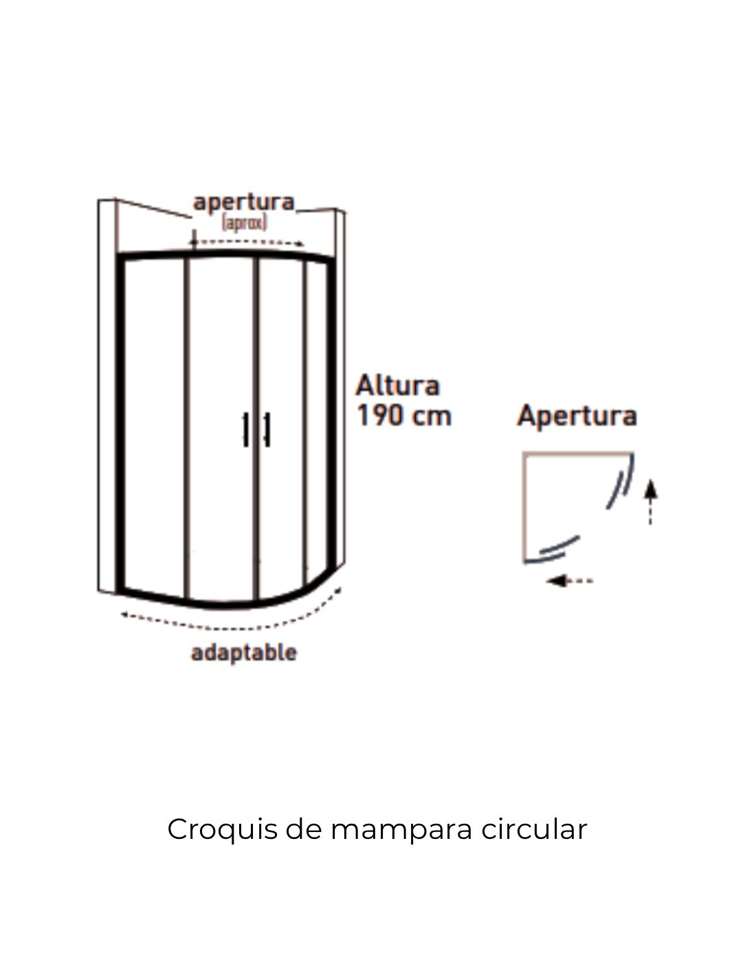 Mampara cromo - semicircular 2 puertas y 2 fijos Zurich. Perfil cromo con 2 puertas y 2 fijos.