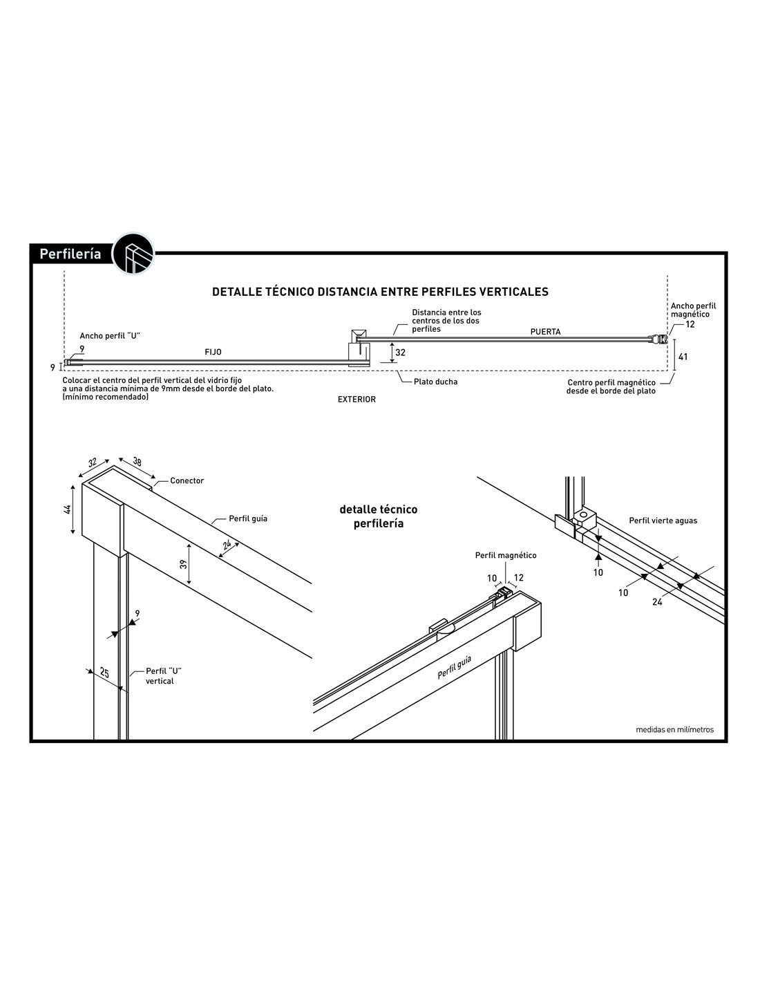 Con esta mampara puedes conseguir un cierre perfecto en los casos en los que la pared tenga mucho desnivel gracias al perfil receptor autoadhesivo de aluminio y el cierre magnético oculto.