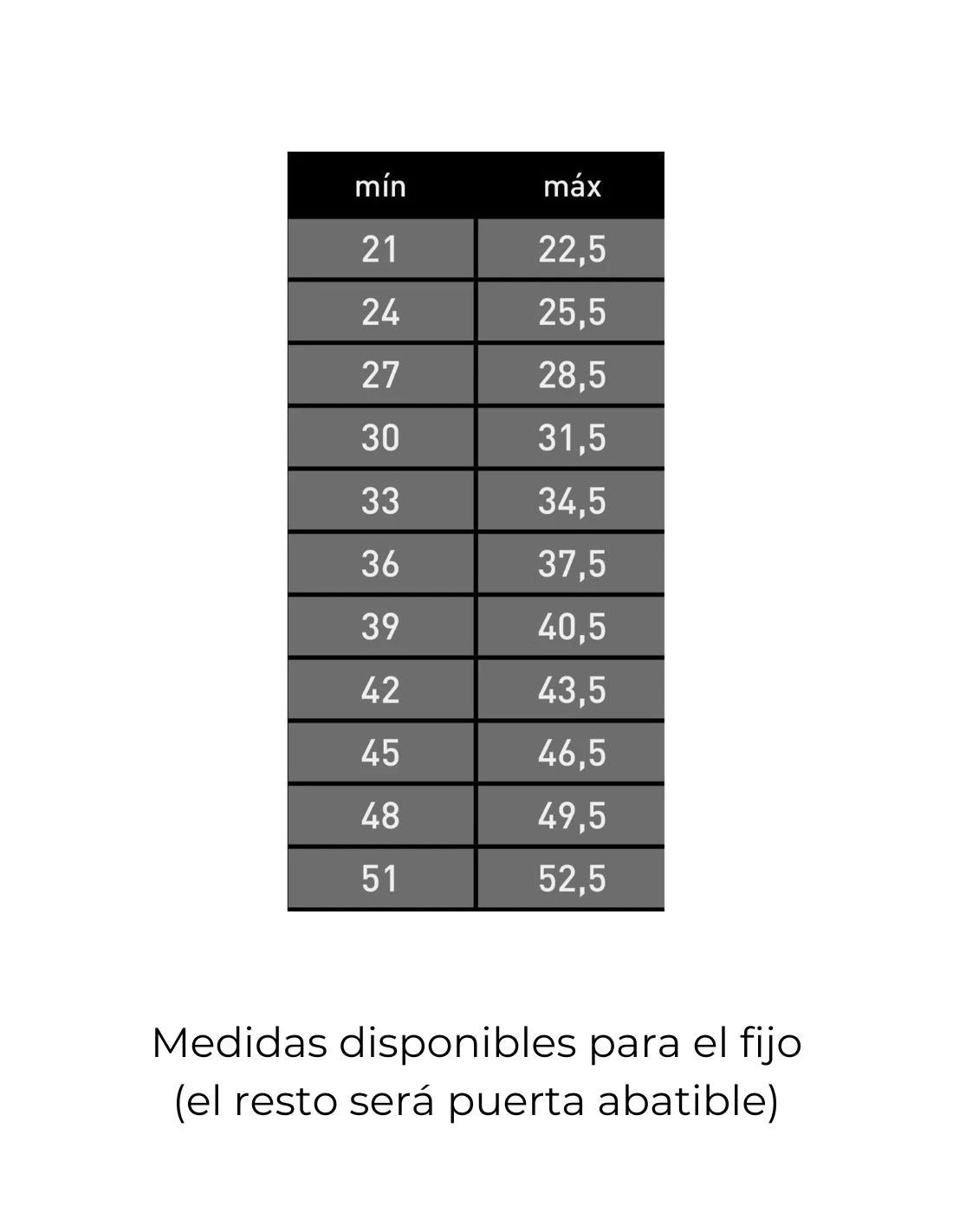 - Indicar medidas de los fijos según la tabla, el resto será puerta.