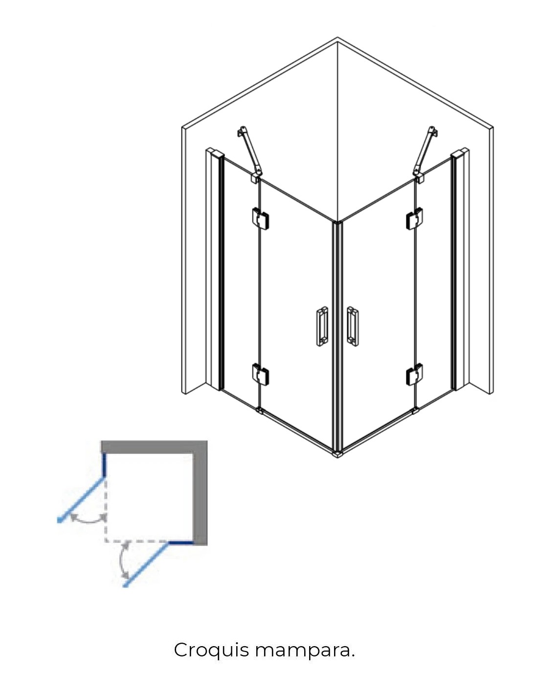 - Medidas: Disponibles en diferentes medidas diferentes de ancho para el frontal como para el lateral. Con diferentes combinaciones de puertas y fijos para garantizar una apertura angular adecuada a cada cuarto de baño.