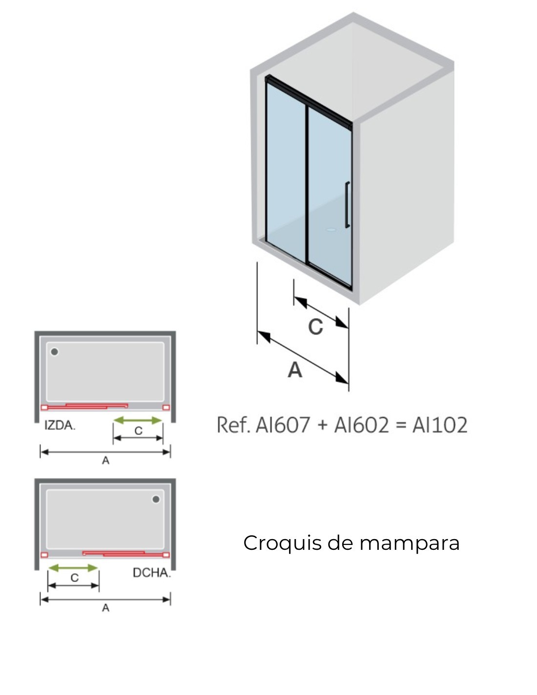 - 1 fijo + 1 puerta corredera