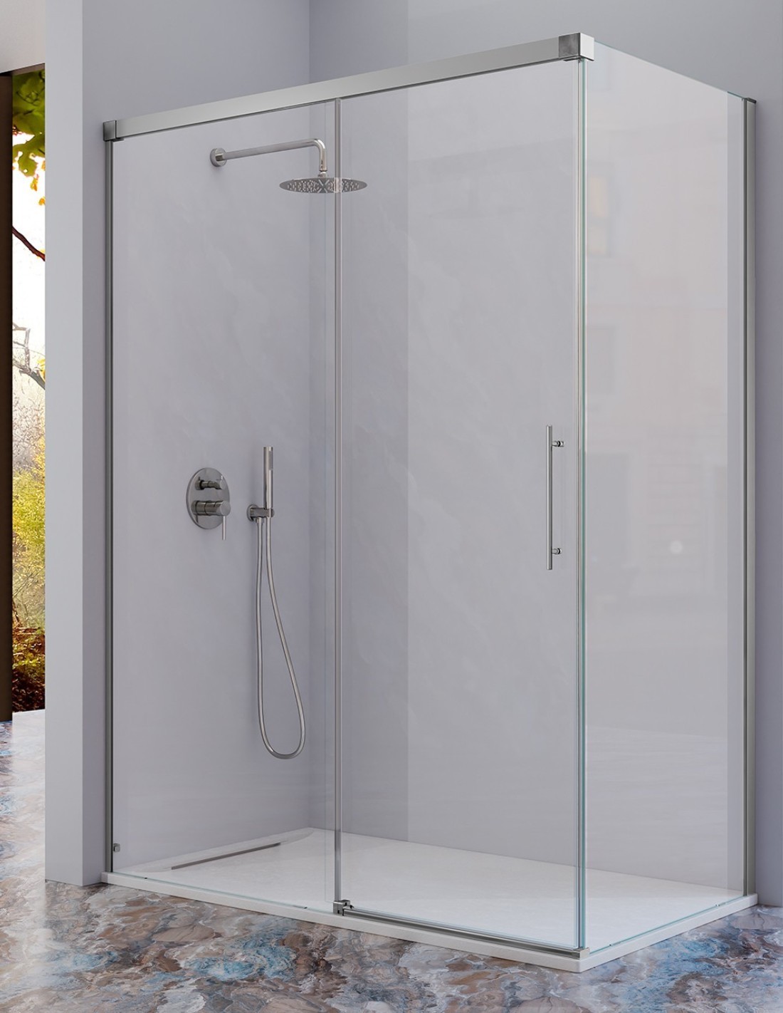 Mampara de ducha angular - cromo 1 fijo + 1 puerta corredera + 1 fijo lateral URBAN de Kassandra