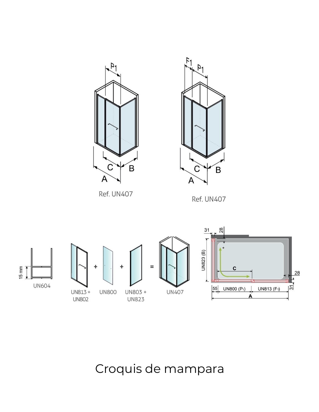 · IMPORTANTE: Para no paralizar su pedido indicar medida de ancho (A), medida de puerta standard y medida lateral fijo standard (B).