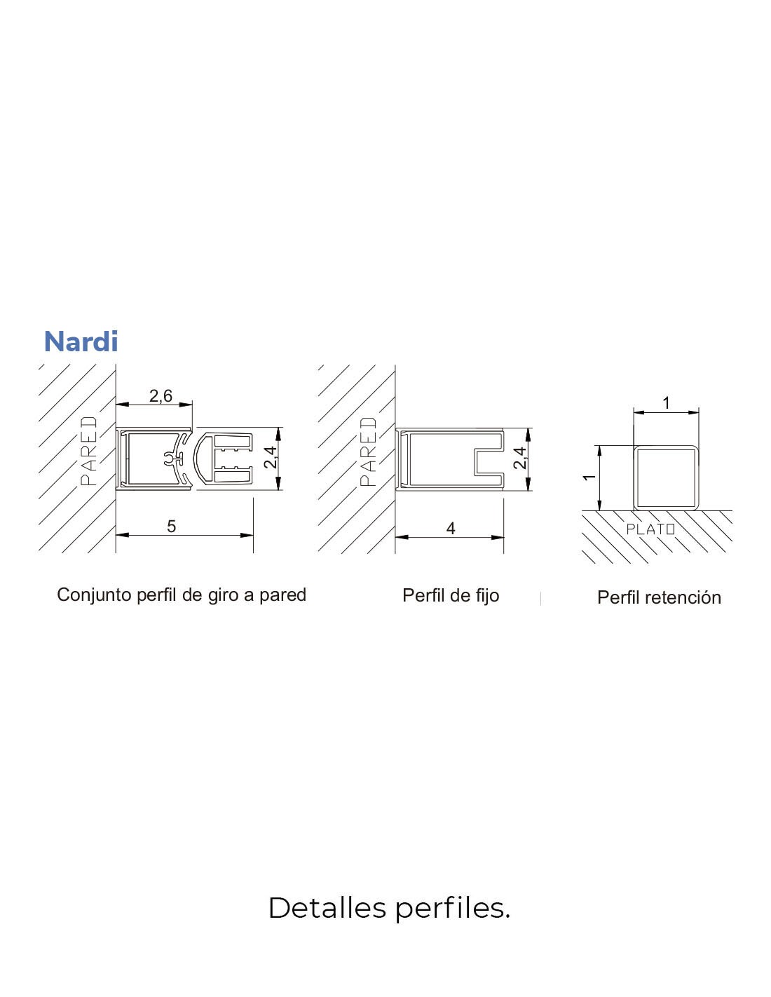 ¿Necesitas el máximo espacio de apertura para tu ducha? Nuestra Mampara ducha plegable y fijo modelo Nardi es el modelo perfecto. Vidrio de 6 mm transparente. Es perfecta para medidas de hueco de pared a pared superior a 1 mtr.