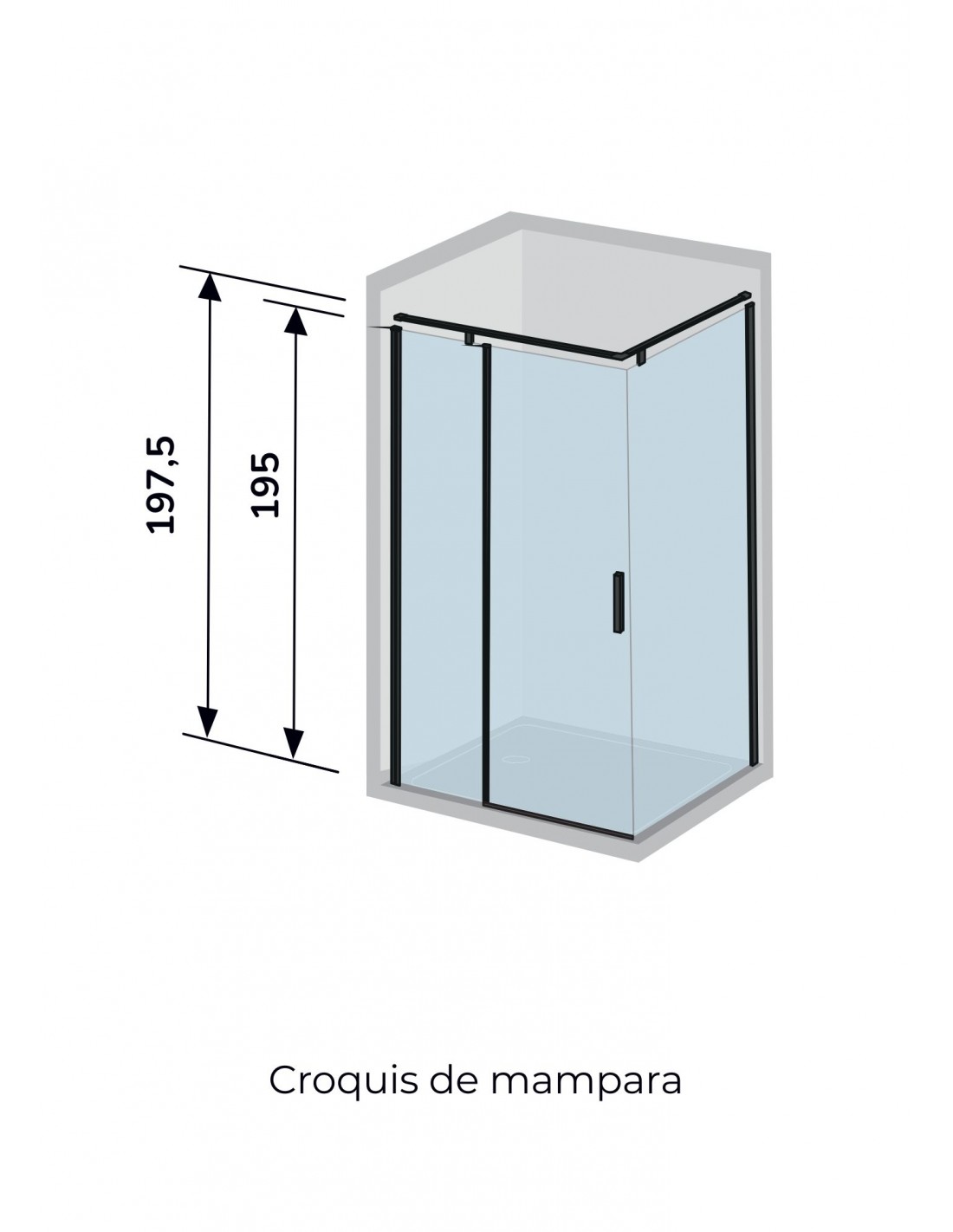 Características principales de la Mampara ducha angular - 1 fijo + 1 puerta abatible + 1 lateral fijo oro cepillado Nardi de Kassandra: