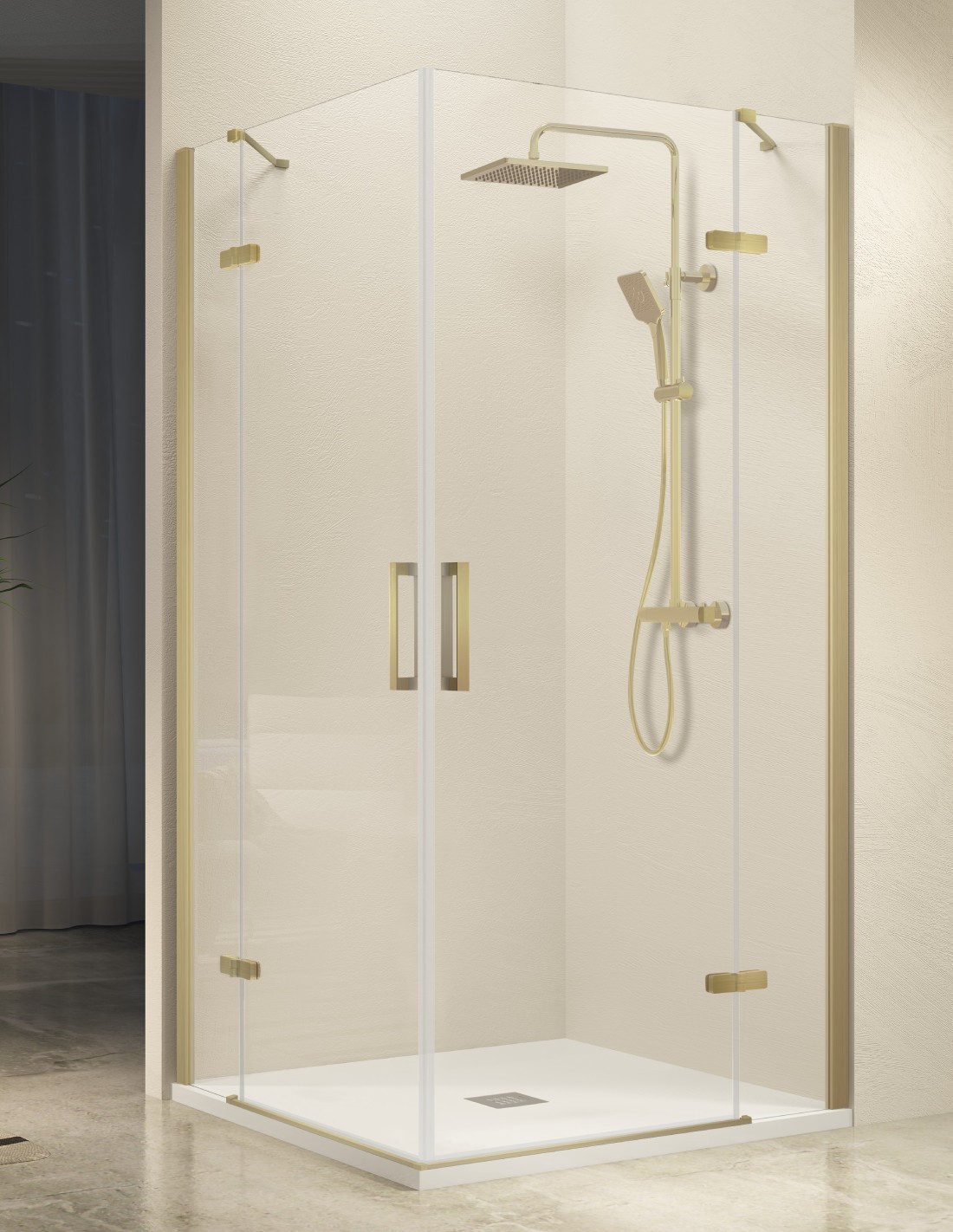 ¿Necesitas el máximo espacio de apertura para tu ducha? Nuestra Mampara angular abatible - Nardi Oro cepillado de Kassandra es el modelo perfecto. Vidrio de 6 mm transparente con tratamiento antical incluido y perfilería oro cepillado.