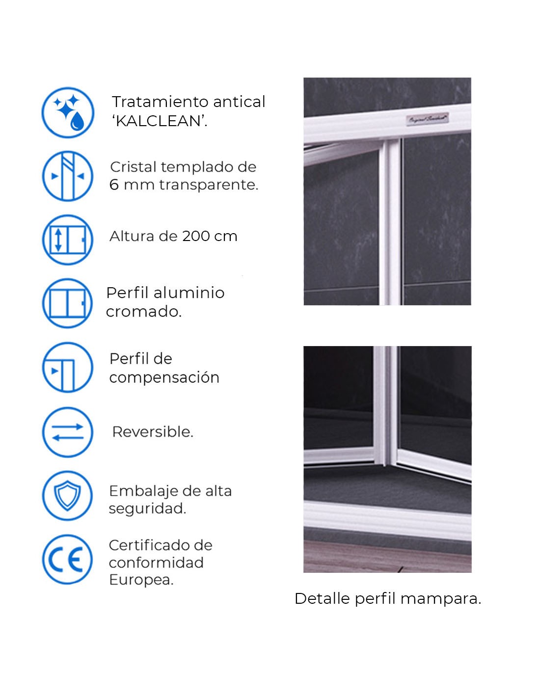 ·         Limpieza: Se recomienda para un eficaz mantenimiento de la mampara, limpieza del vidrio tratado con agua limpia y secar con un paño suave (importante secar el vidrio).