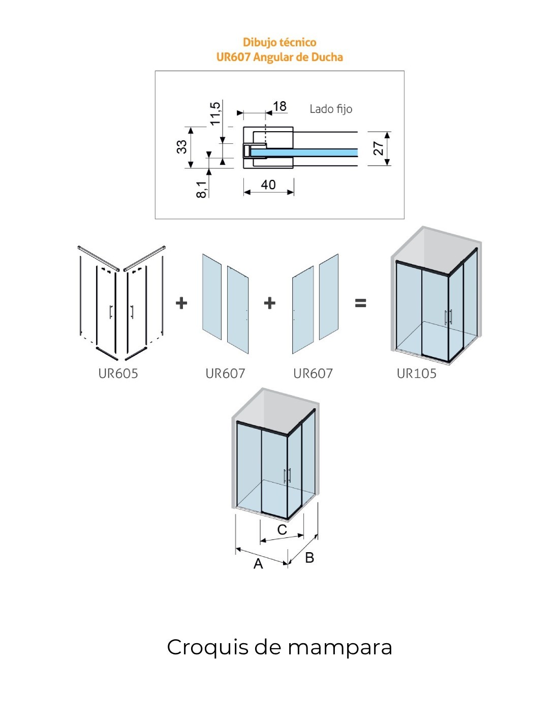 Características principales de Mampara de ducha angular - plata mate cepillado 2 fijos + 2 puertas correderas URBAN de Kassandra: