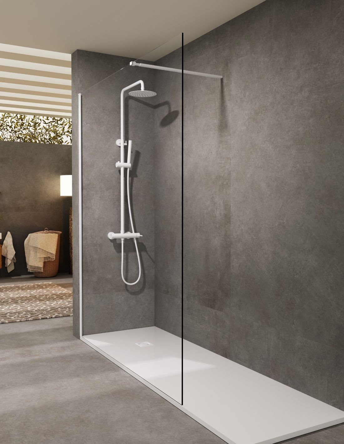 Mampara fija blanca modelo Screen de SBX - Mamparas Imex.