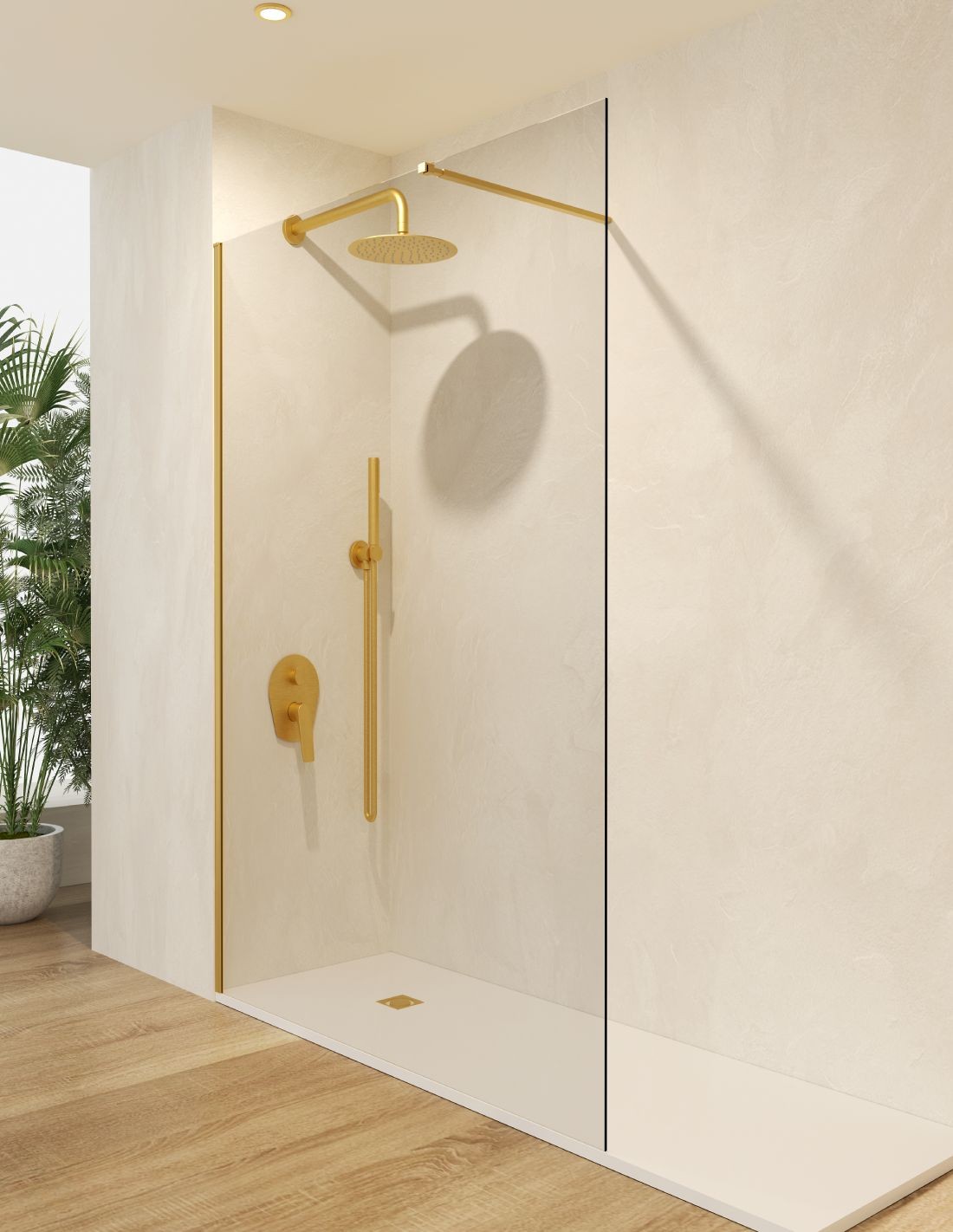 Mampara fija oro cepillado modelo Screen de SBX - Mamparas Imex.