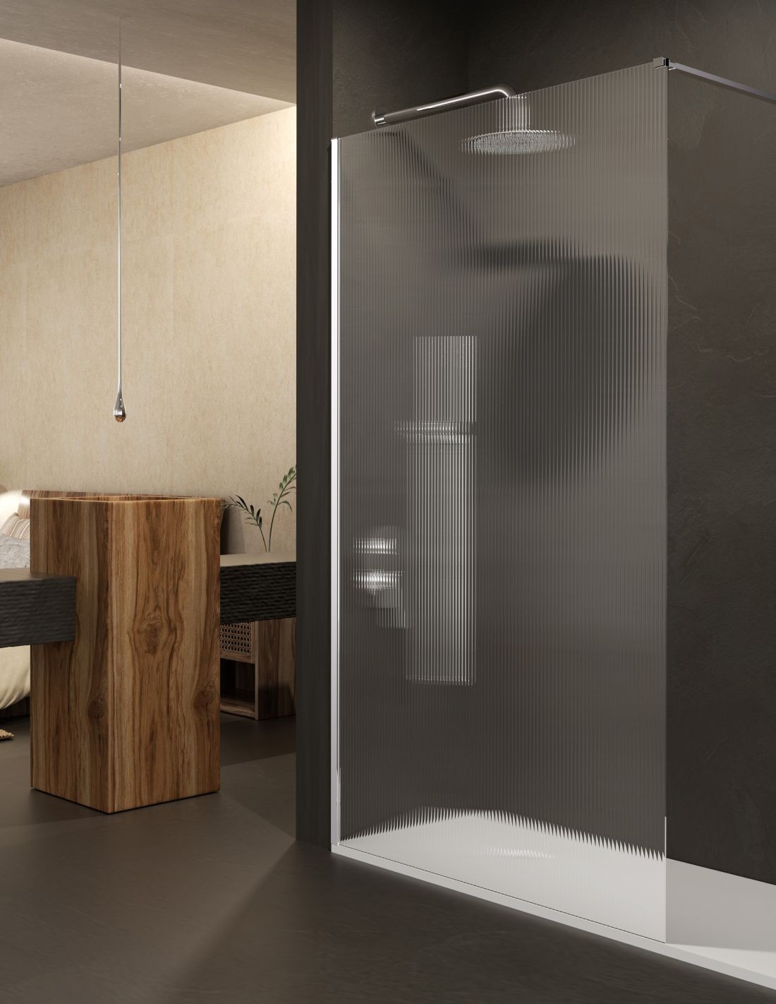 Mampara fija acanalada cromo modelo Screen Waves de SBX - Mamparas Imex.