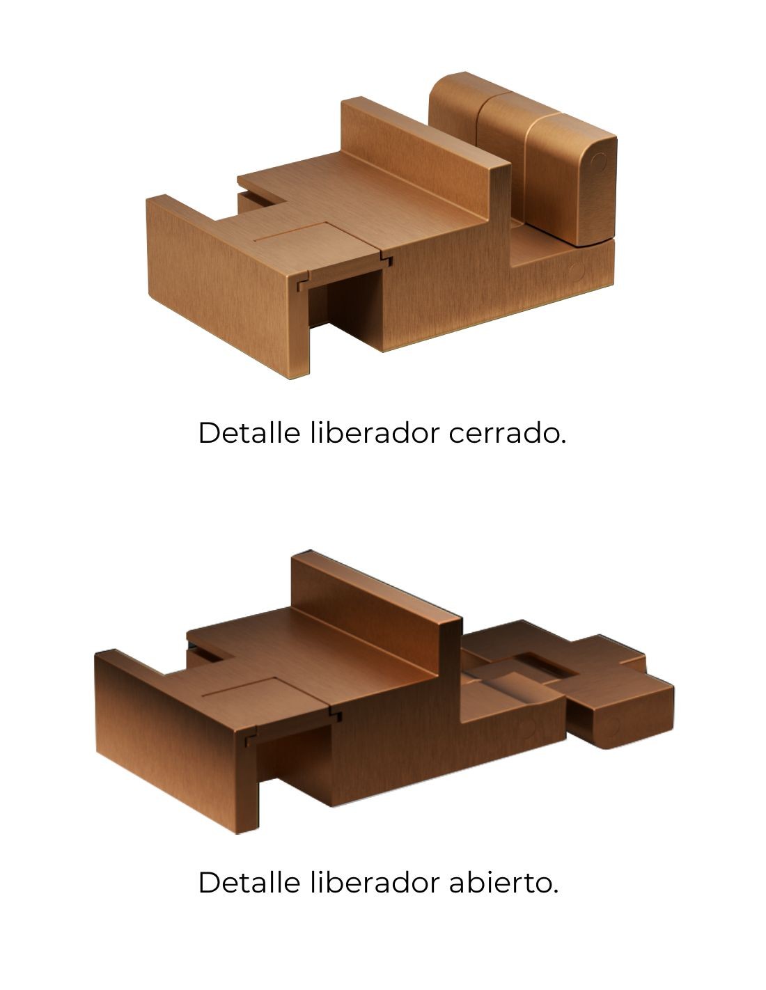 - Liberador de puerta metálico con un diseño que alarga la vida útil por su fácil desmontaje y limpieza.