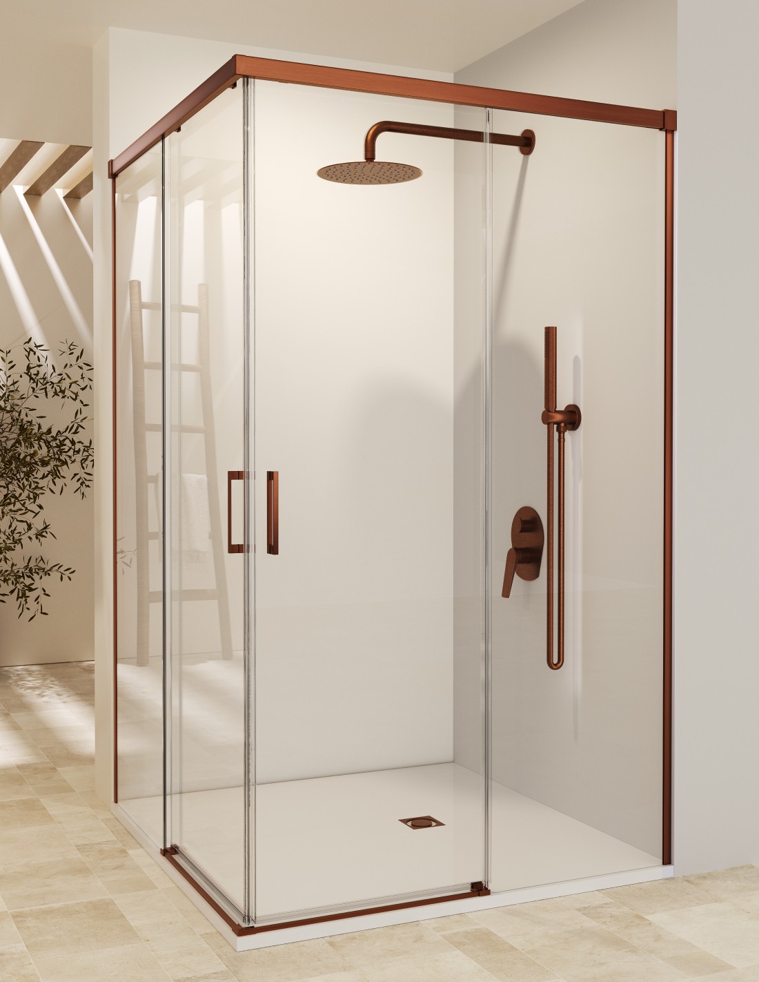 Sería ideal poder combinar tu mampara de ducha con tus grifos, accesorios y espejos todo en el mismo acabado, ¿verdad? Pues ahora es posible gracias al grupo Imex. Elige tu mampara perfecta a juego con tu grifería y accesorios. Conoce nuestra mampara angular dos fijas y dos correderas oro rosa cepillado modelo Stylo de SBX - Mamparas Imex.