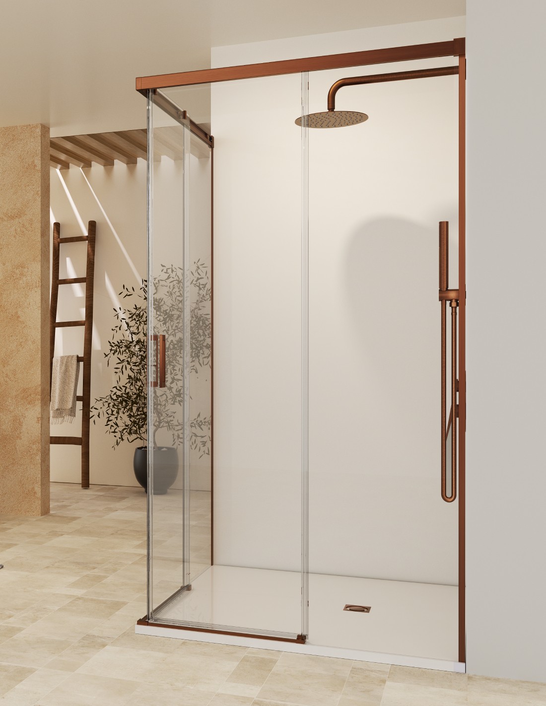 Mampara angular dos fijas y dos correderas oro rosa cepillado - Stylo de SBX Mamparas Imex