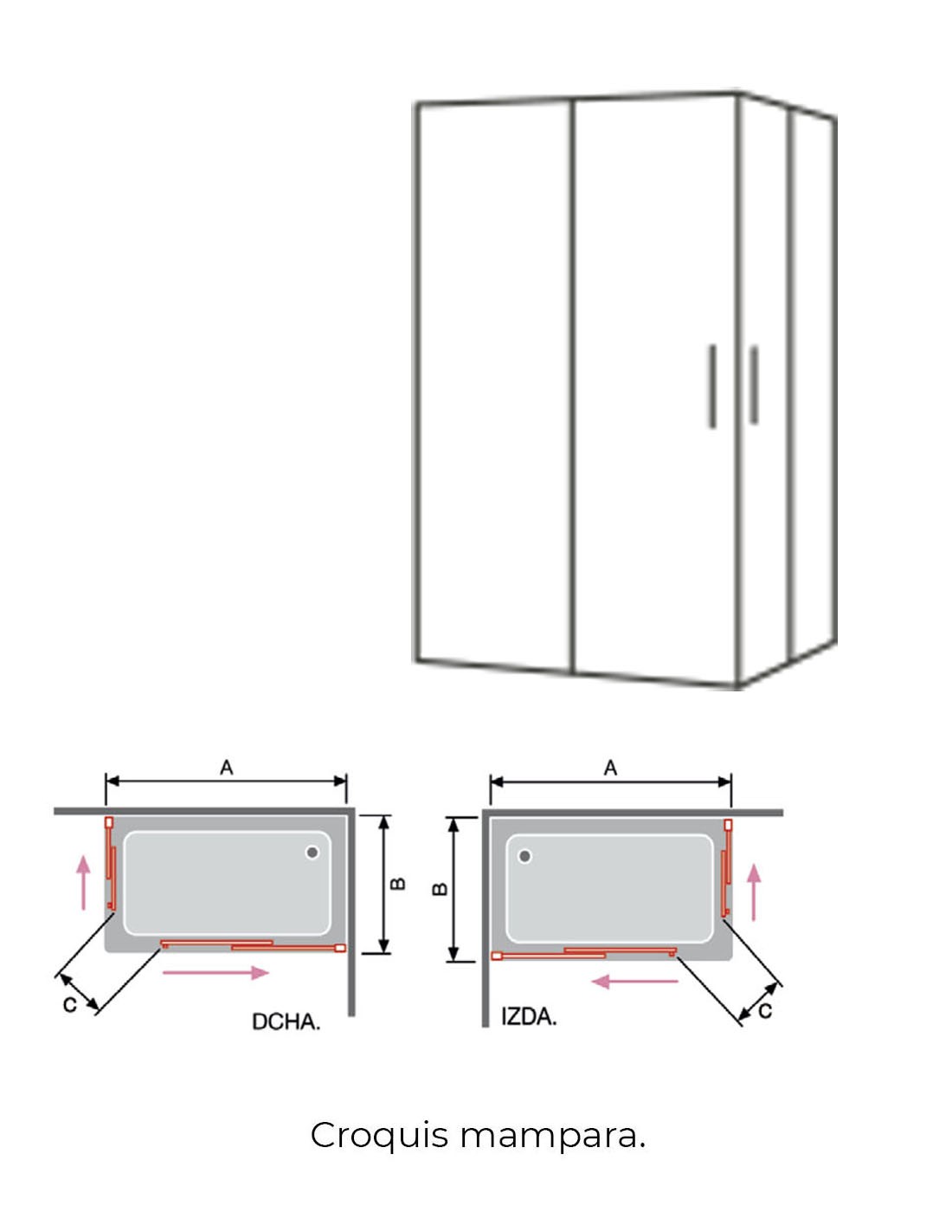 Esta mampara dispone de perfilería de aluminio con acabado negra y está compuesta por vidrio templado de 6 mm de espesor, que puede ser transparente.