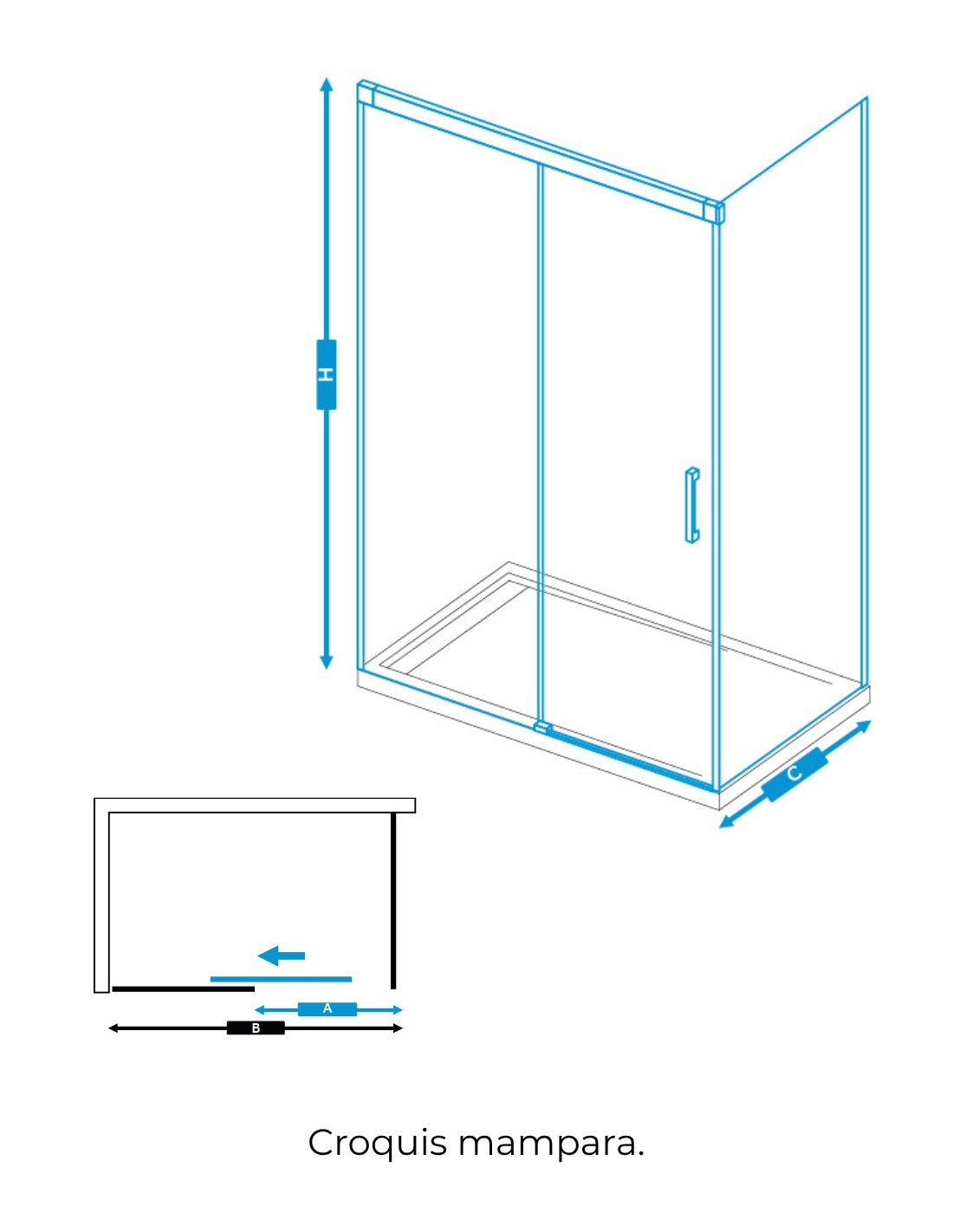 - Frontal 1 fijo + 1 puerta corredera + 1 lateral fijo