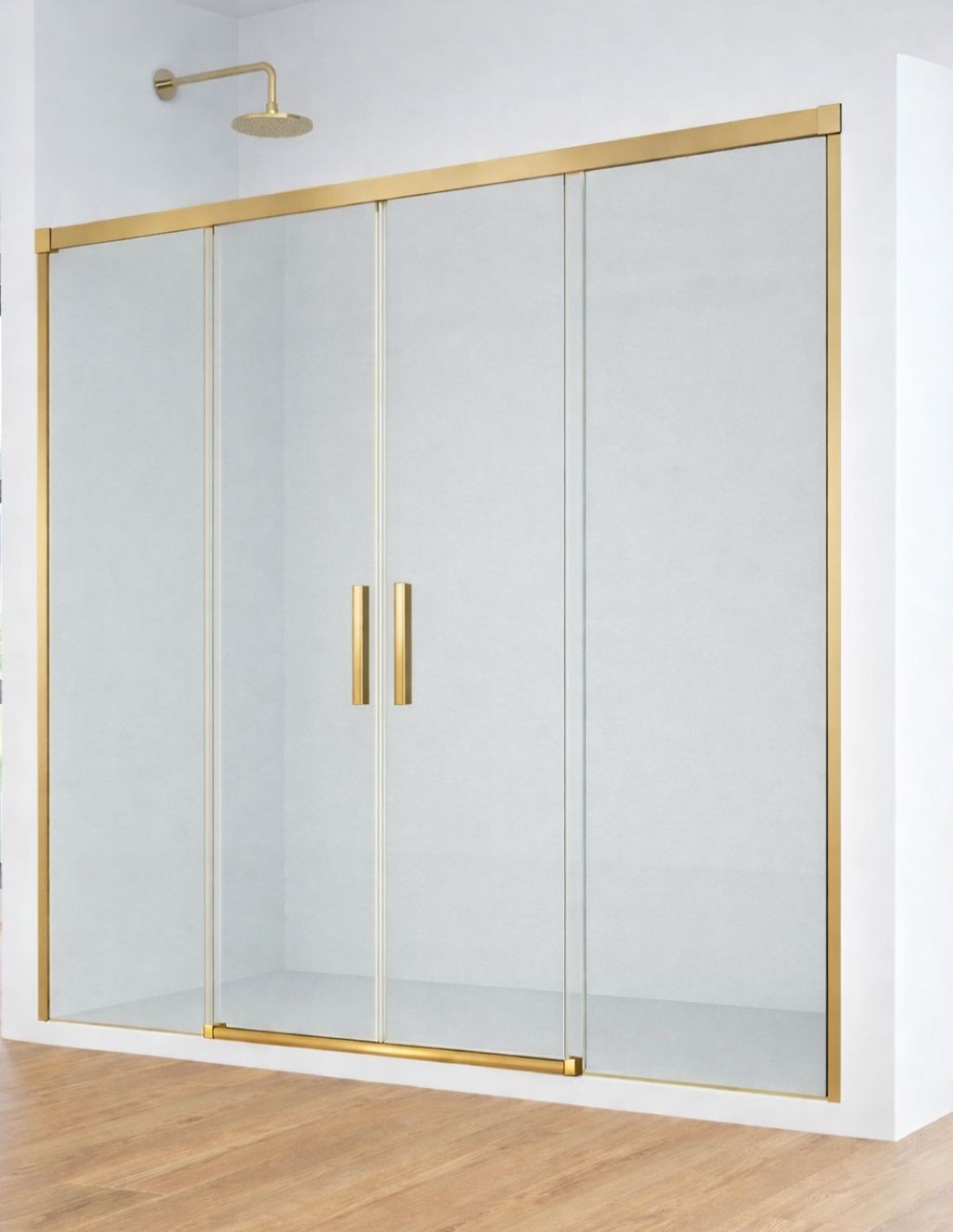Mampara oro cepillado dos fijos y dos correderas - CAUCE de Bathplus