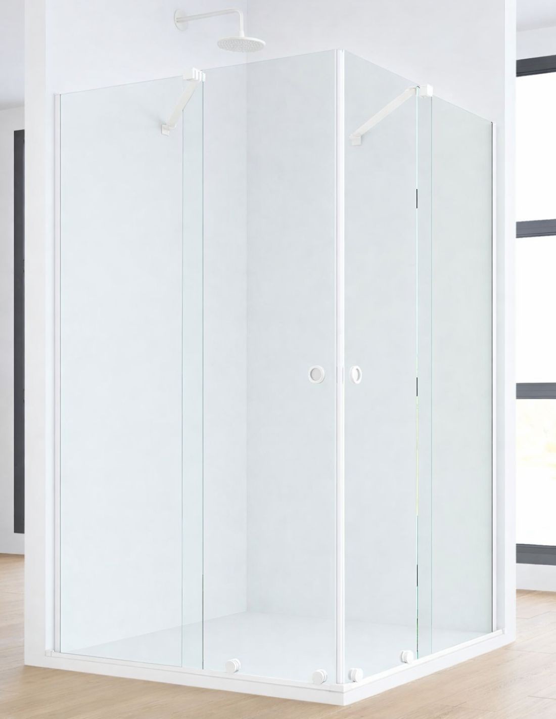 Mampara de ducha angular blanco mate - LIFE de Bathplus para darle un toque elegante y de amplitud visual a tu baño.