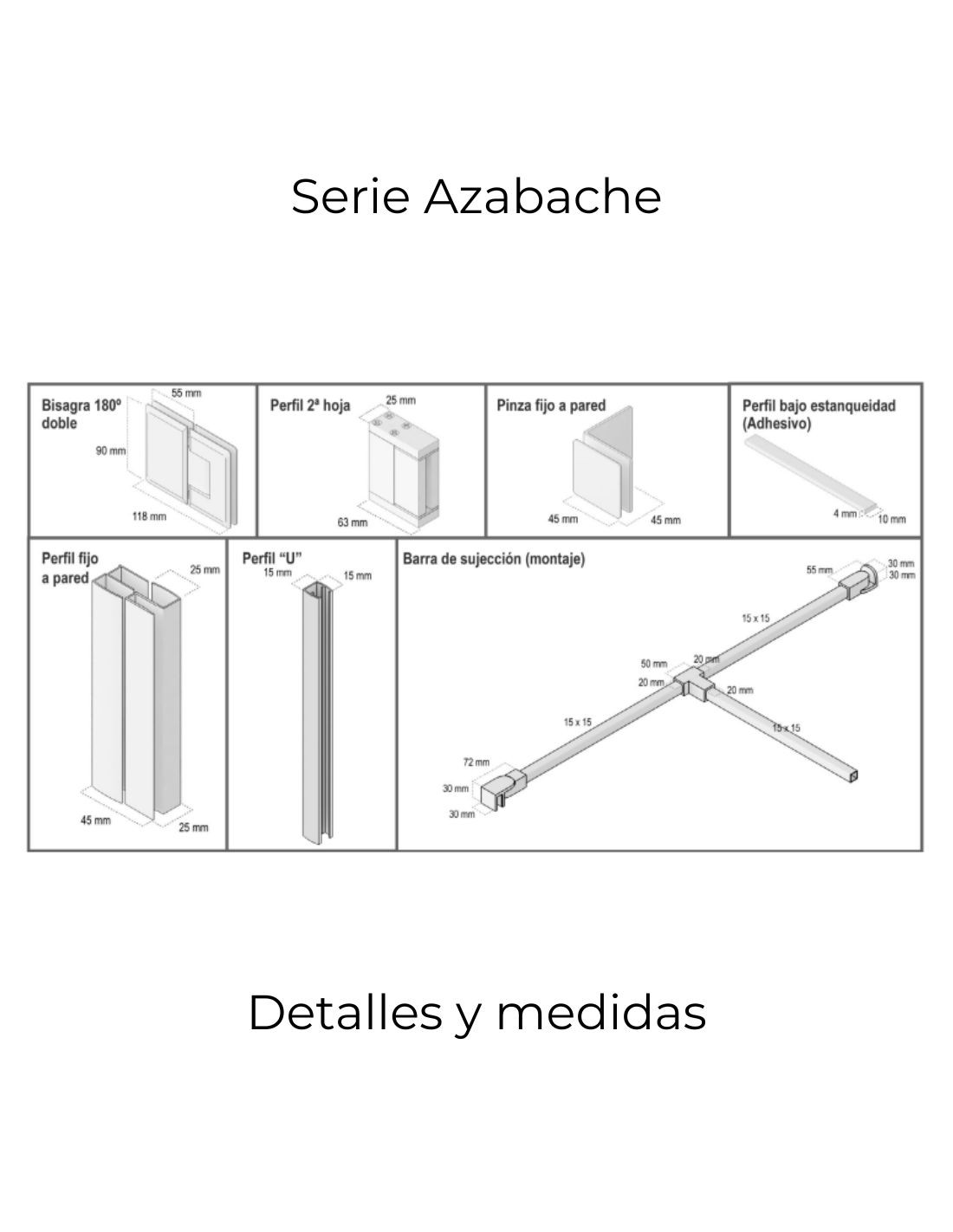 • Incluye perfil "U" en fijo a pared 15 mm. Permite compensar 1 cm.