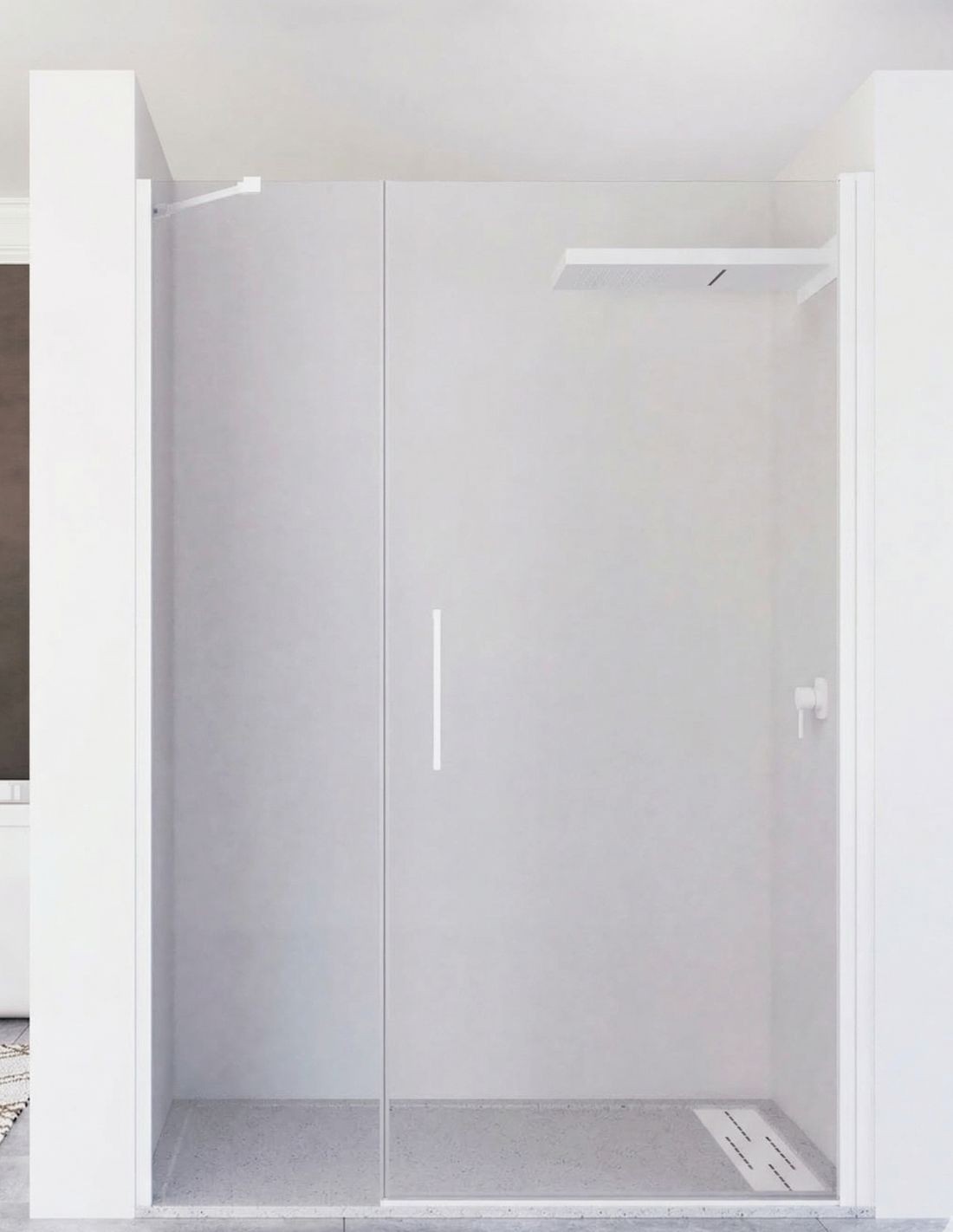 Mampara abatible blanca - 1 hoja + 1 cristal fijo NADIA de Seviban. Vidrio templado de 6 mm. Tratamiento Antical incluido.