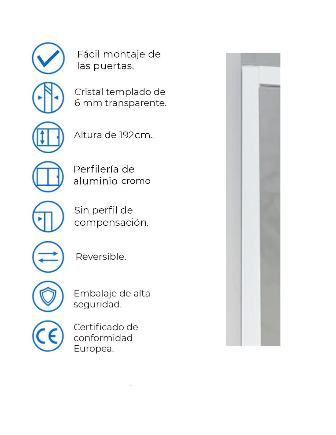 Características principales de la Mampara ducha perfil CROMO - modelo 205 2 fijos y 2 puertas corredera de Hispabaño: