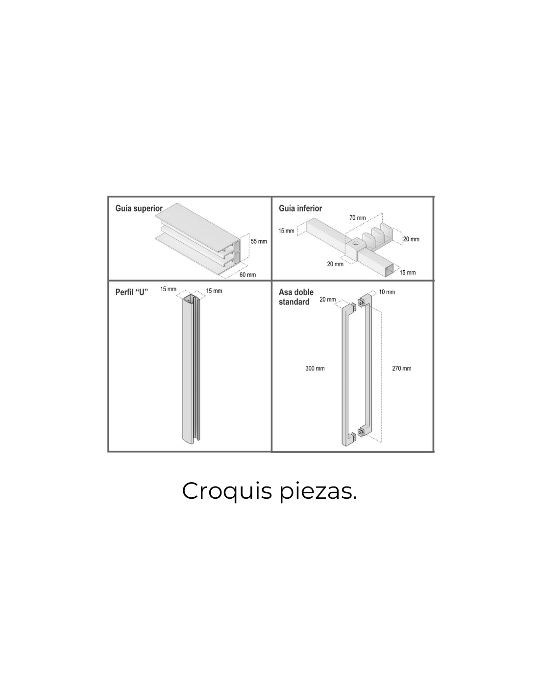 • Incluye perfil de compensación de 46 mm de aluminio. Permite compensar 2.5 cm. por cada lado.