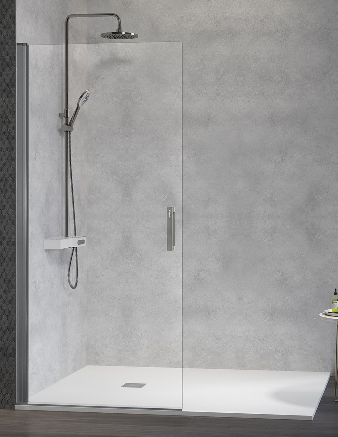 ¿Necesitas una hoja para tu mampara pero la quieres a hueco abiero? Nuestra Puerta abatible para mampara - Nardi a hueco abierto cromo de Kassandra es el modelo perfecto. Vidrio de 6 mm transparente con tratamiento antical incluido y perfilería cromo.