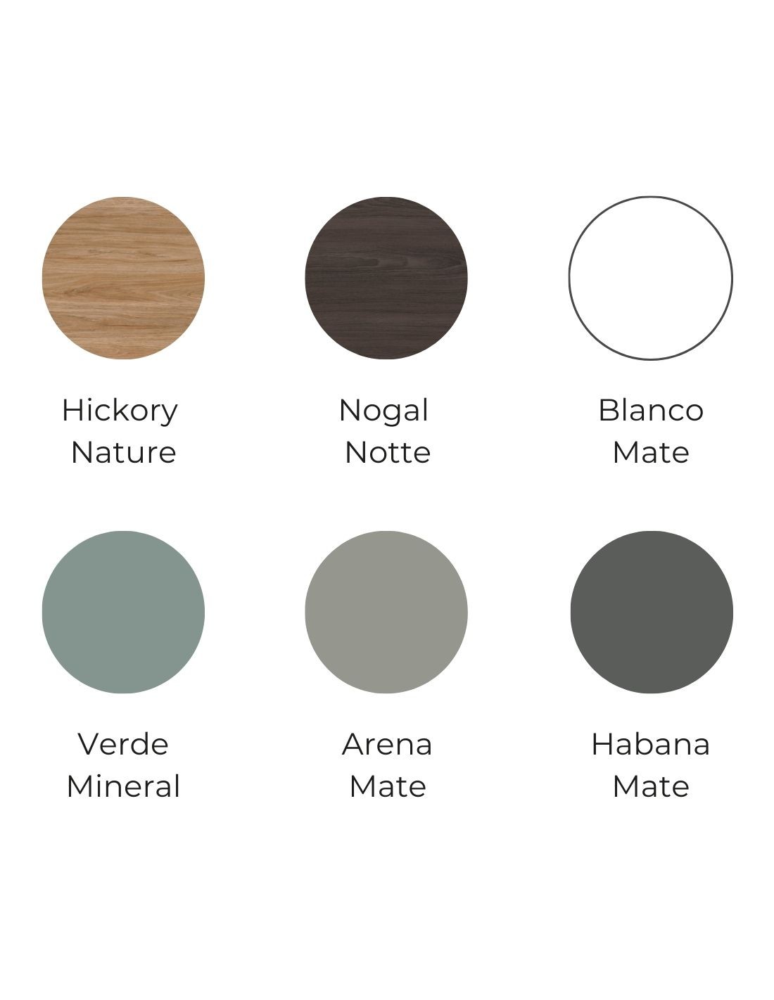 Disponible en acabados madera: Hickory Nature y Nogal Notte.