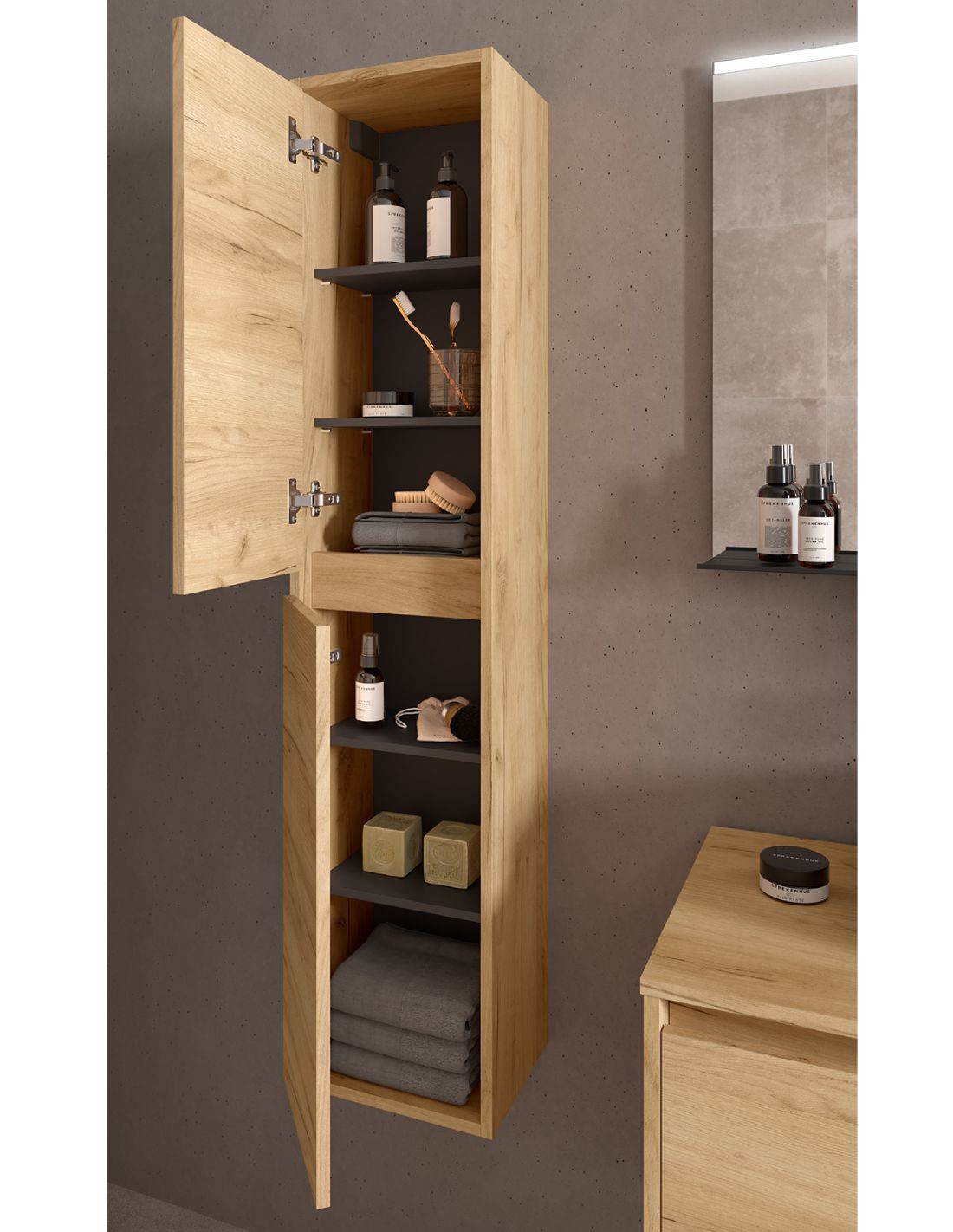 La solución inteligente para quienes buscan orden sin renunciar al diseño. Con su formato estilizado y gran capacidad interior, aprovecha el espacio vertical de tu baño de forma práctica y elegante, integrándose a la perfección con el resto de la colección.