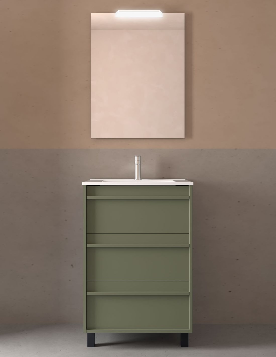 Mueble de lavabo con patas modelo ATTILA de Salgar 3 cajones.