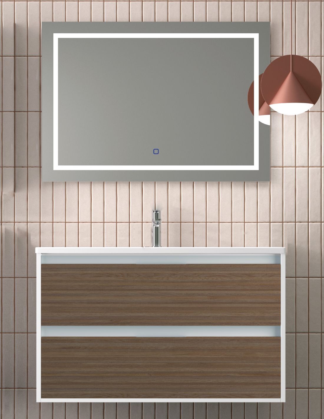 Mueble 2 cajones modelo con lavabo incluido espejo cuadrado LED