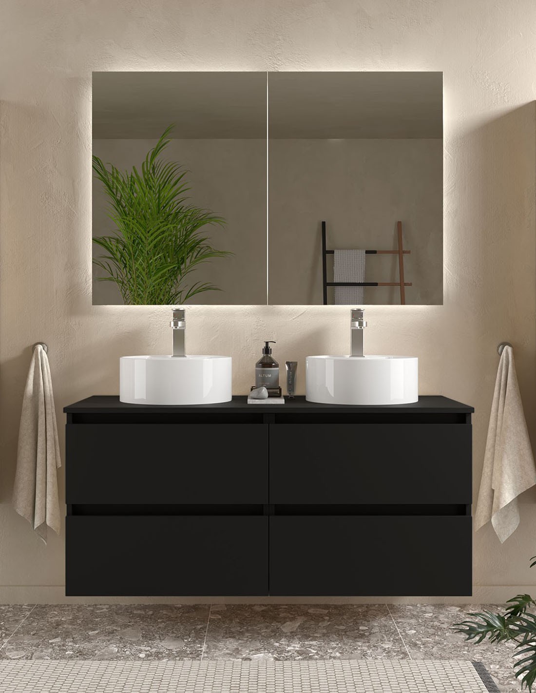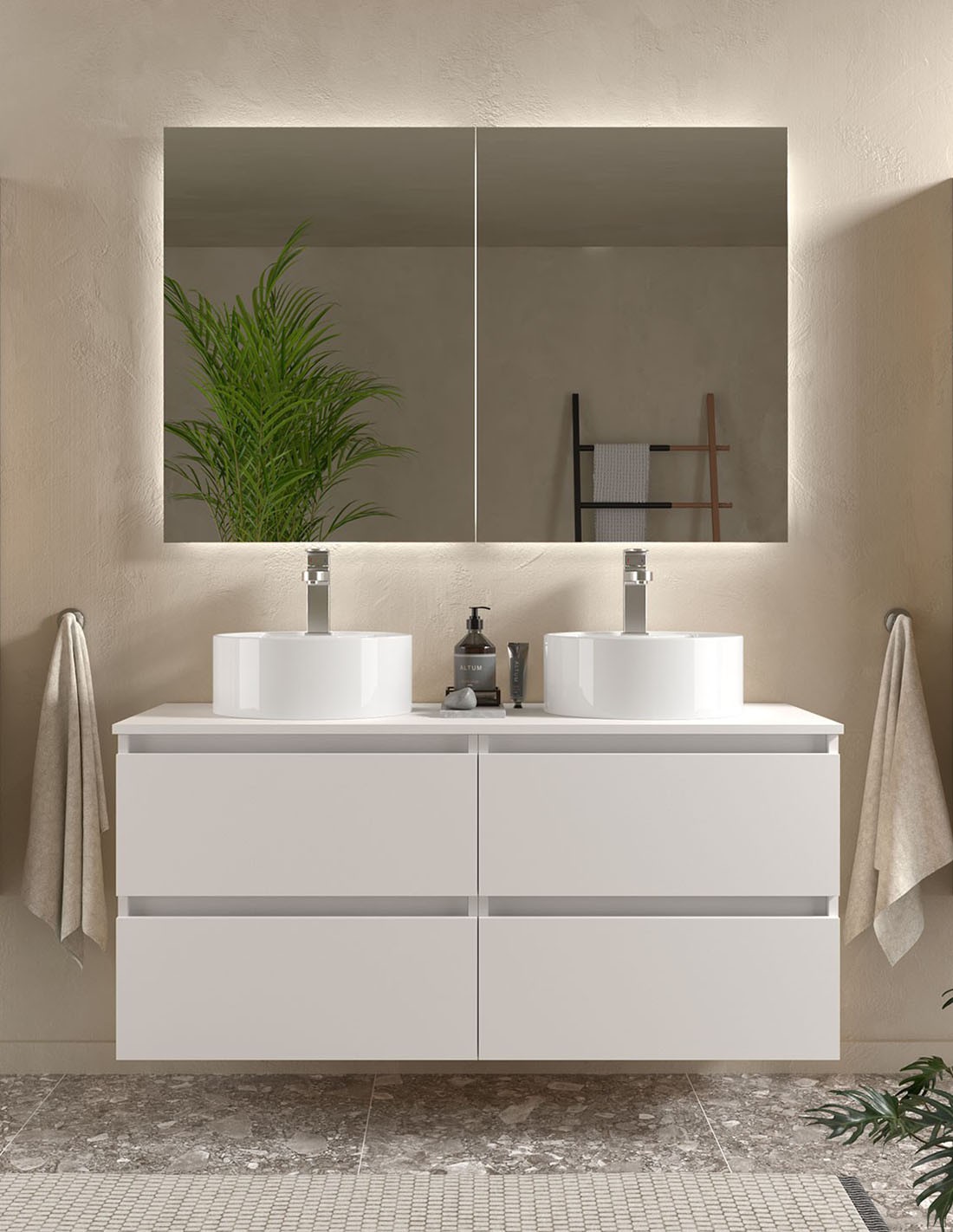 Mueble de baño suspendido de 120 cm - 140 cm BEQUIA de Salgar lavabos sobre encimera