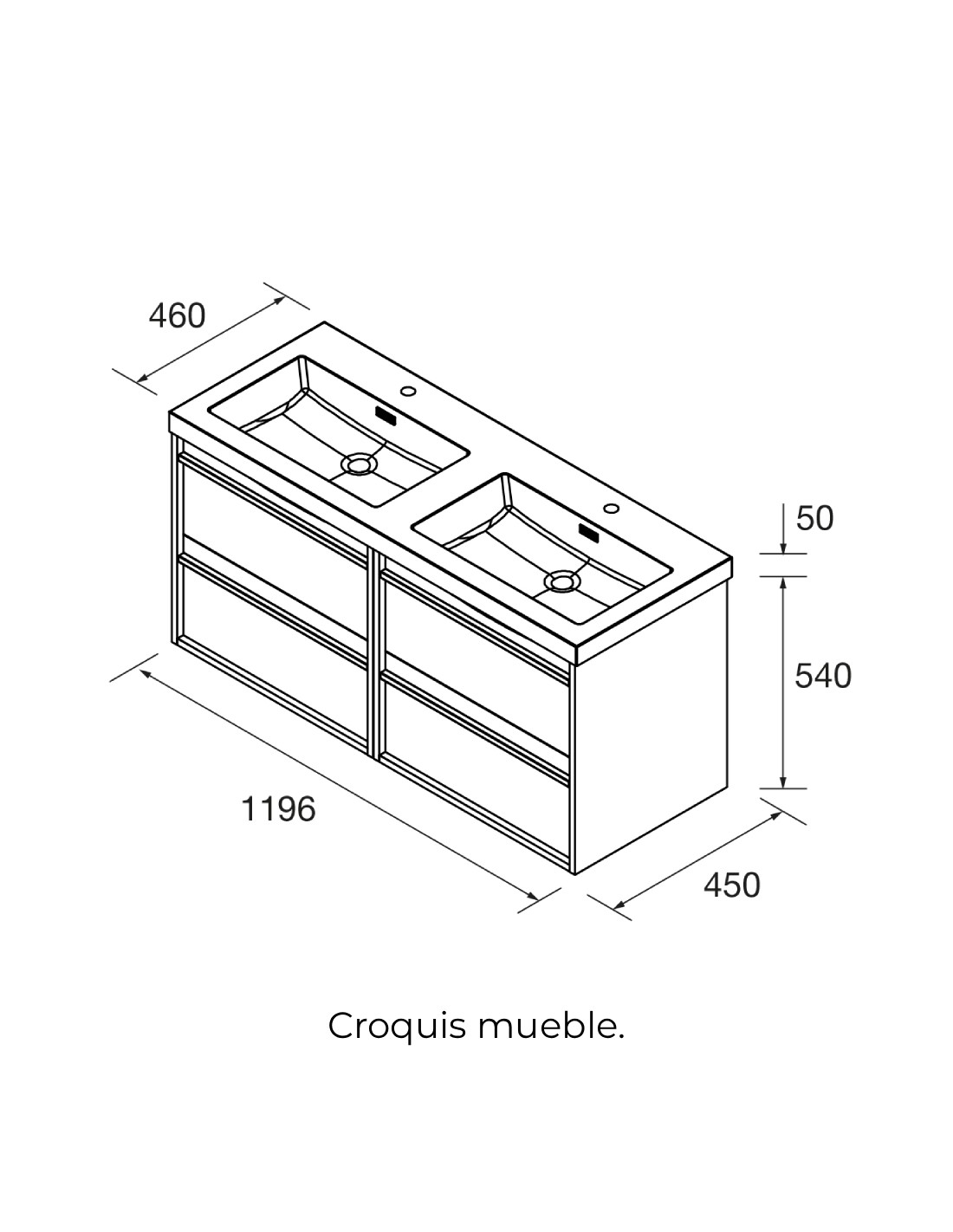 ANCHO: 140 cm. (4 cajones y lavabo doble seno). También disponible en 120 cms.