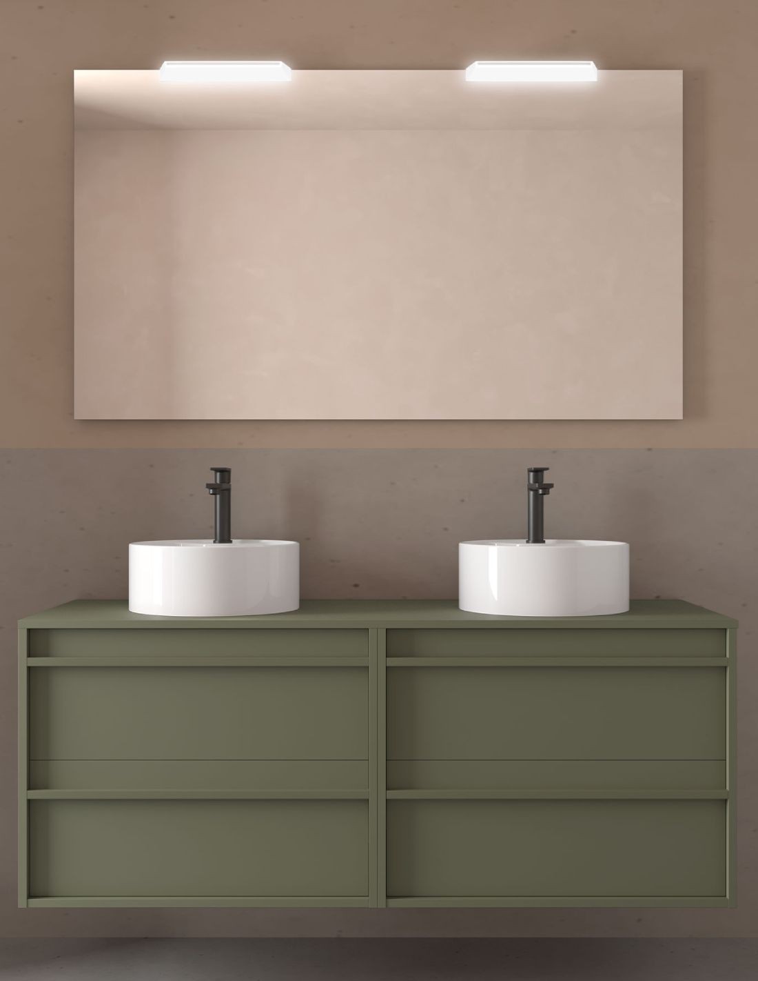 - Incluidos 2 LAVABOS REDONDOS SOBRE ENCIMERA de diseño exclusivo.