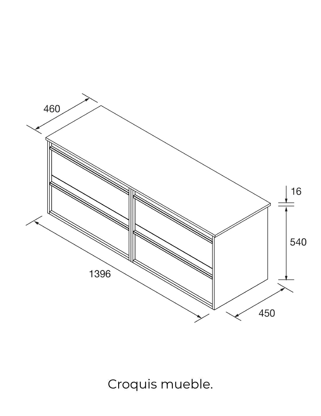 ANCHO: 140 cm. (4 cajones y 1 ó 2 lavabos sobre encimera).