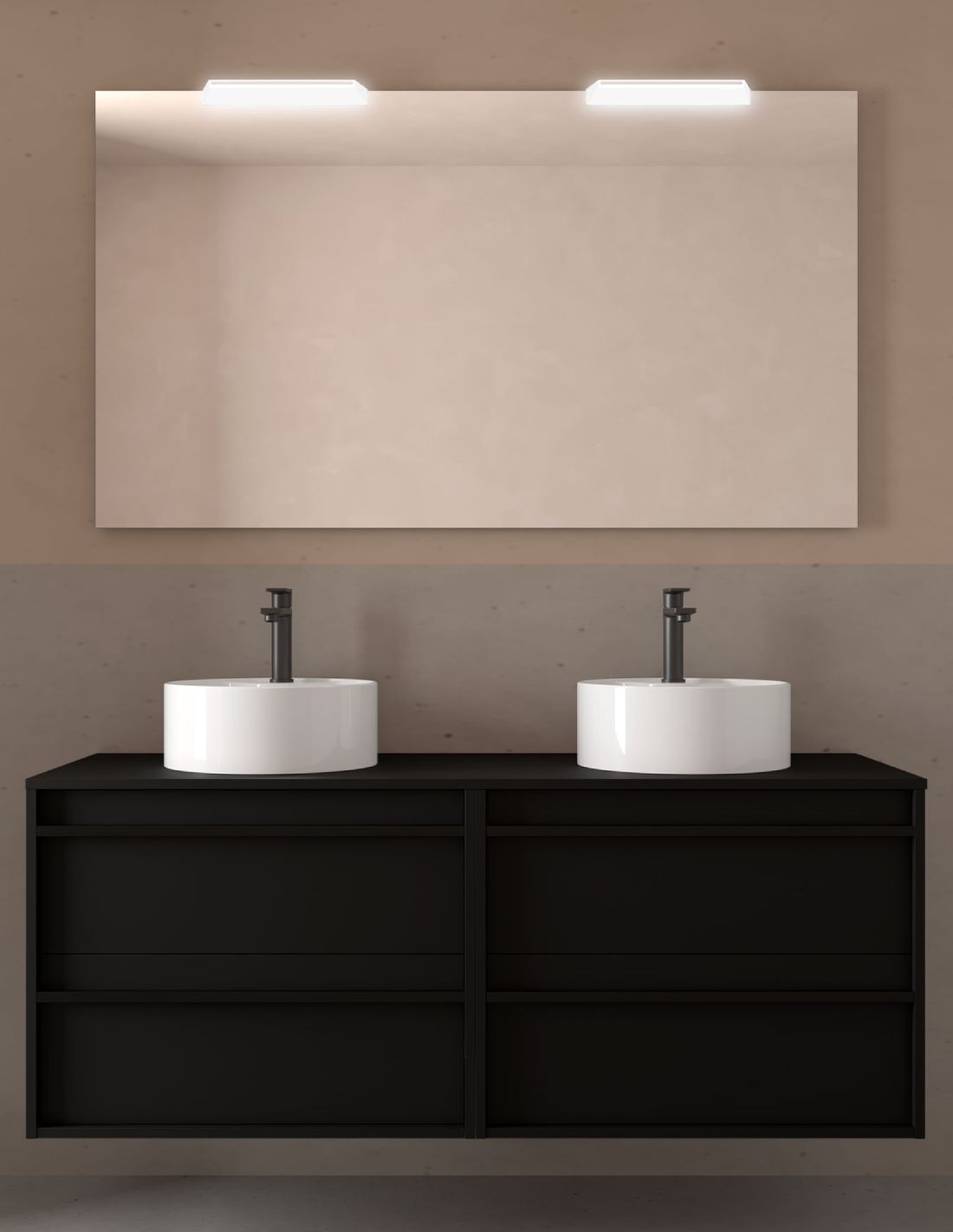 • Incluidos 2 LAVABOS REDONDOS SOBRE ENCIMERA de diseño exclusivo.