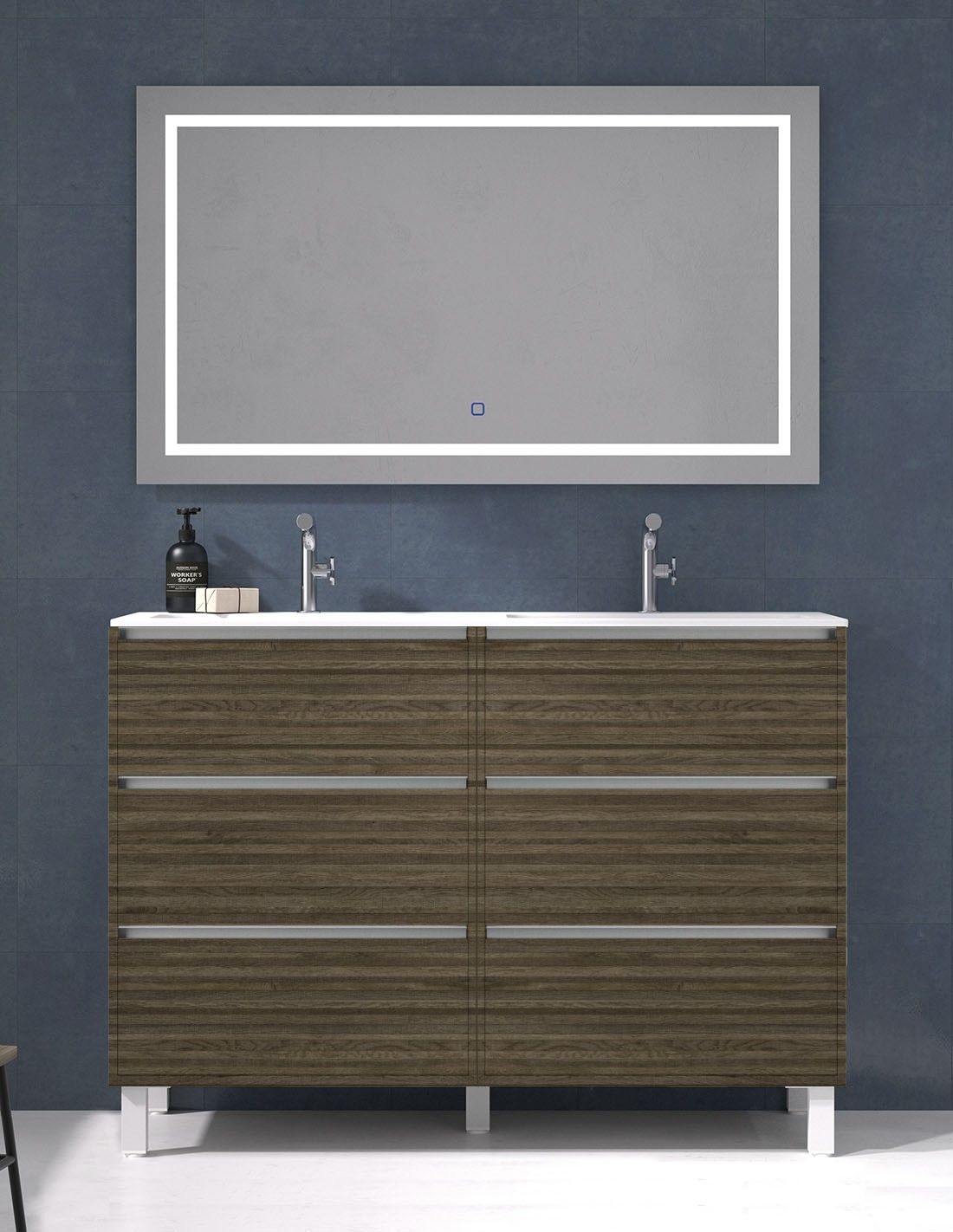 • Opción de añadir ESPEJO LED RECTANGULAR: Retroiluminado frontal, con interruptor Táctil, LED + Antivaho de 120 cm. de ancho por 70 cm. de alto).