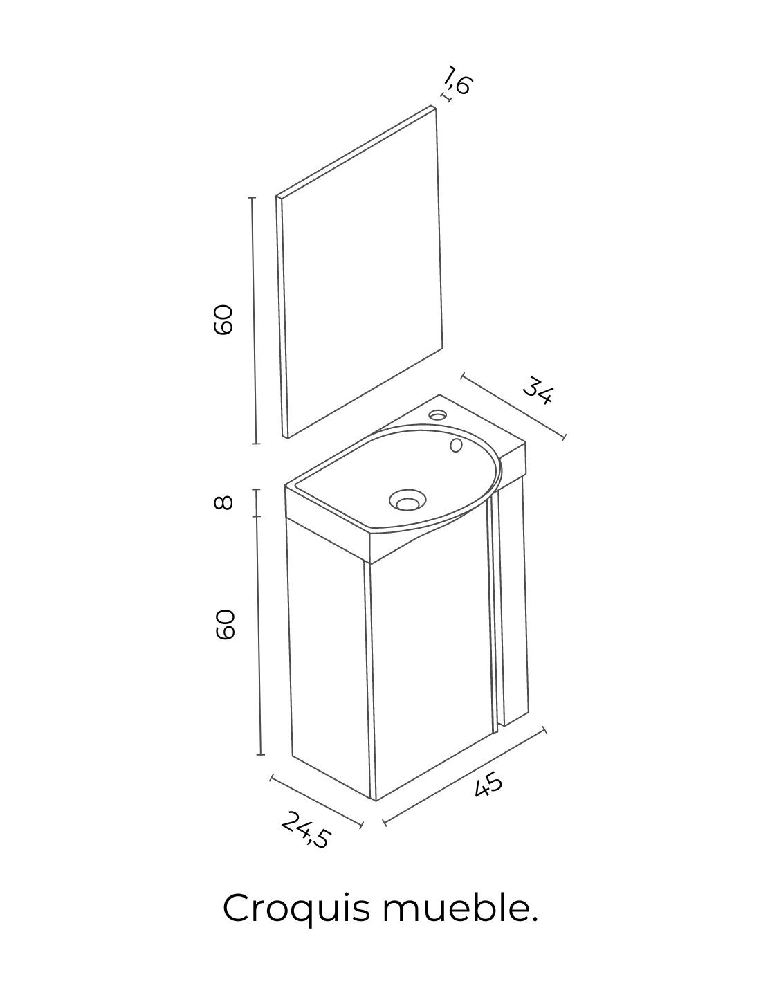 Mueble baño fondo reducido Royo croquis