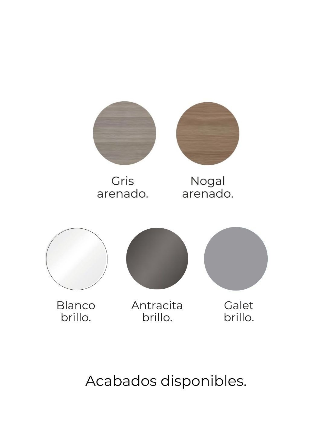 Disponible en acabados madera: Nogal Arenado y Gris Arenado.