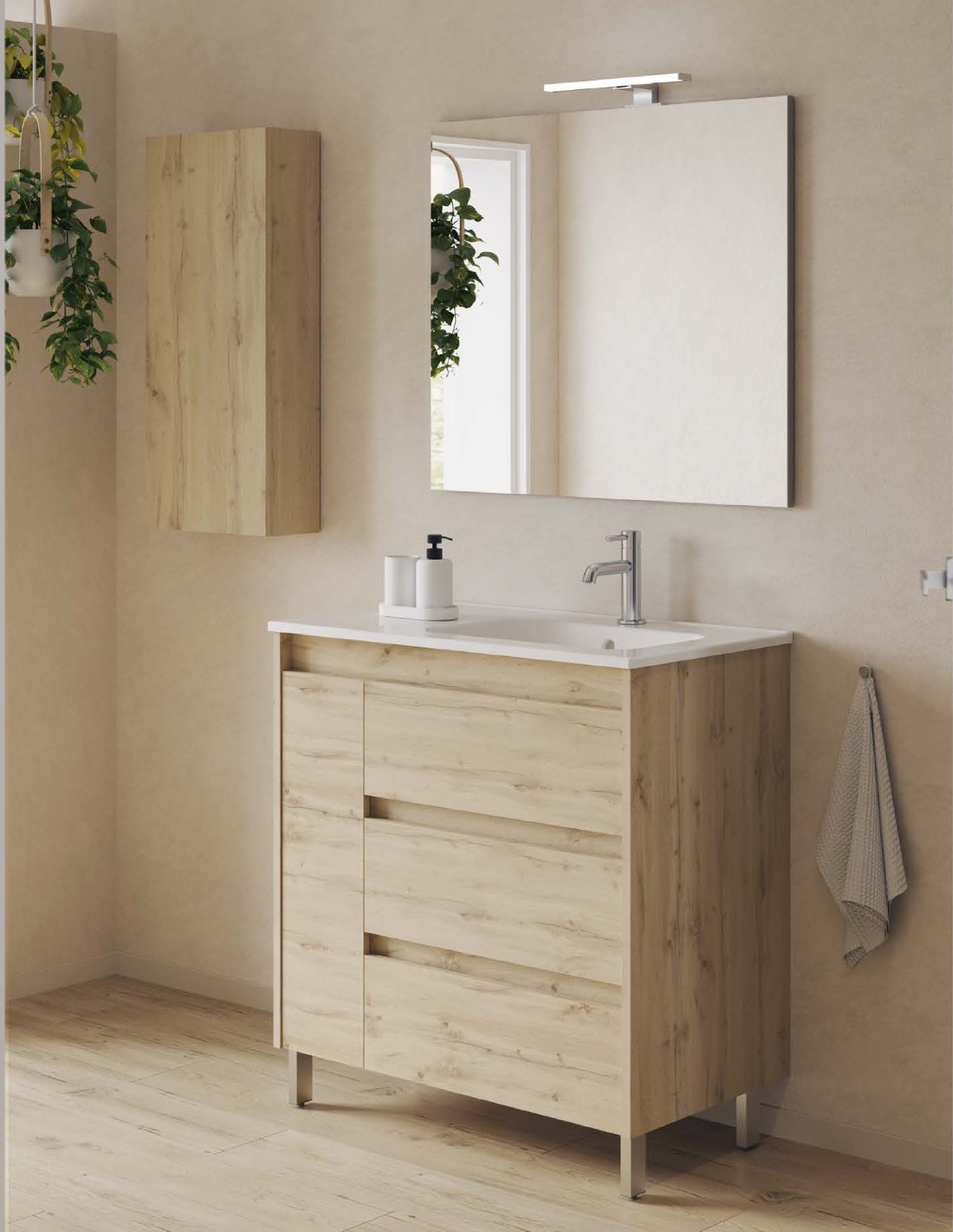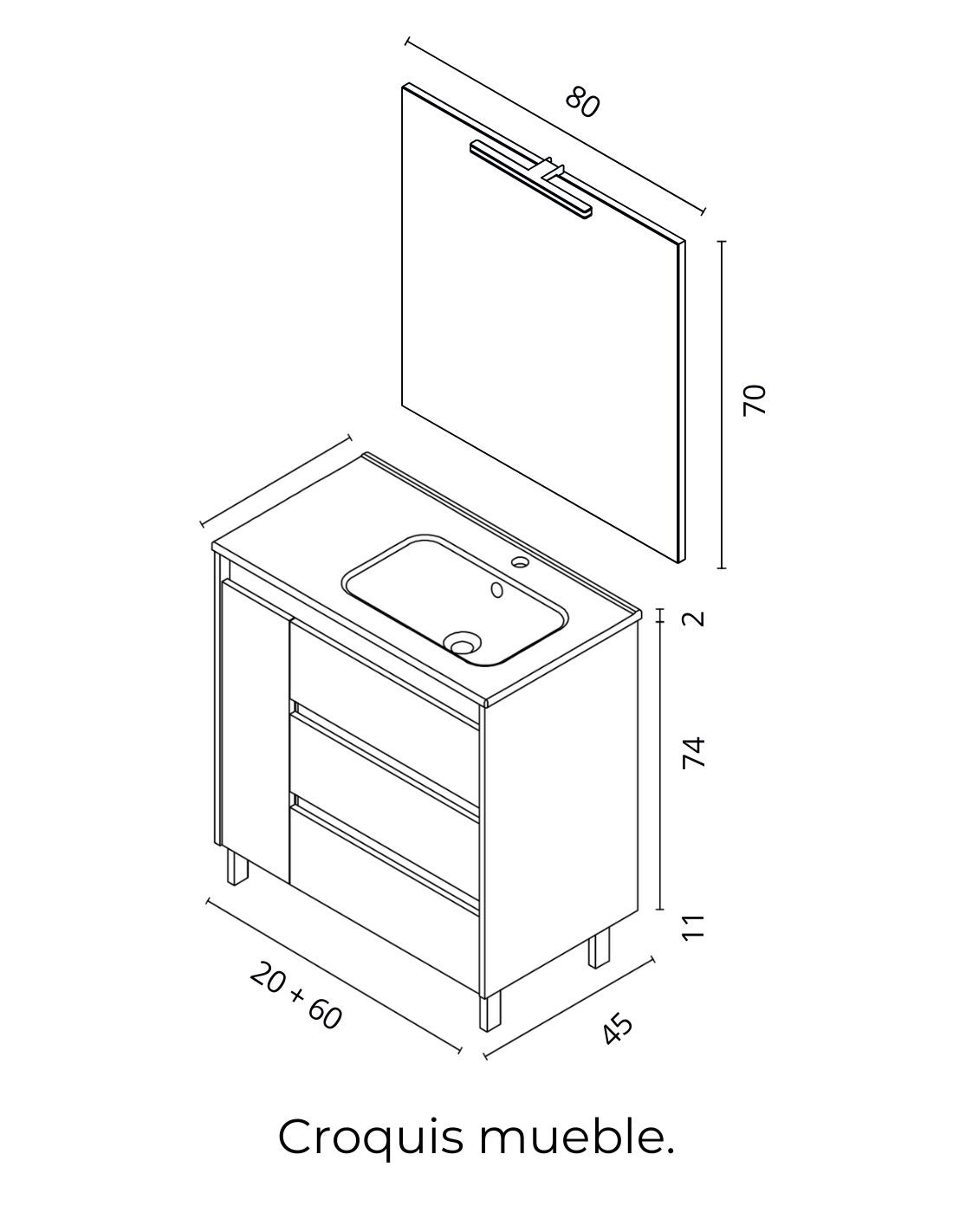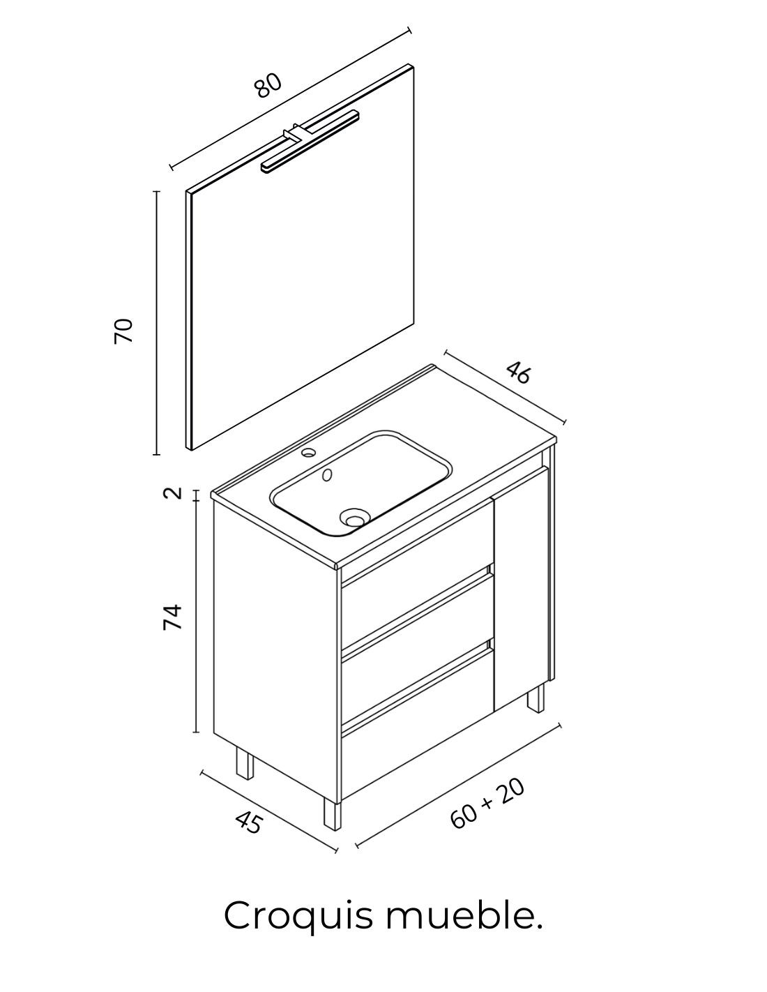 ANCHO: 80 cm. (3 cajones y 1 puerta + un lavabo).