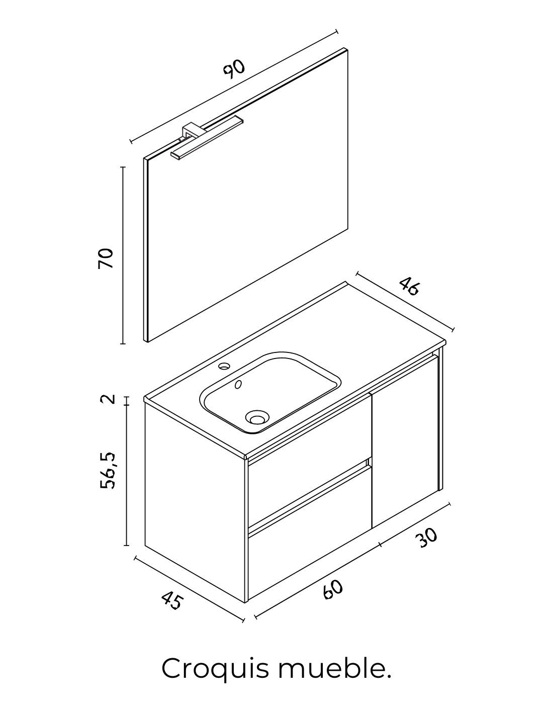 Conjunto mueble de baño de Royo Sansa suspendido 2 cajones + 1 puerta croquis