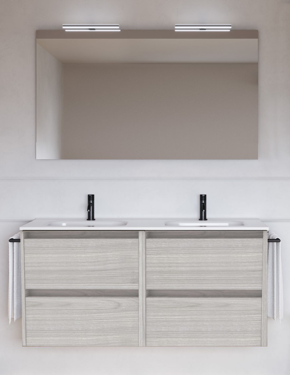 • Espejo + Aplique LED (opcional): Espejo RECTANGULAR modelo Murano sin luz de 120 cm. ancho x 70 cm. de alto. + Apliques LED Uri de 30 cms. Luz fría 4000ºK.