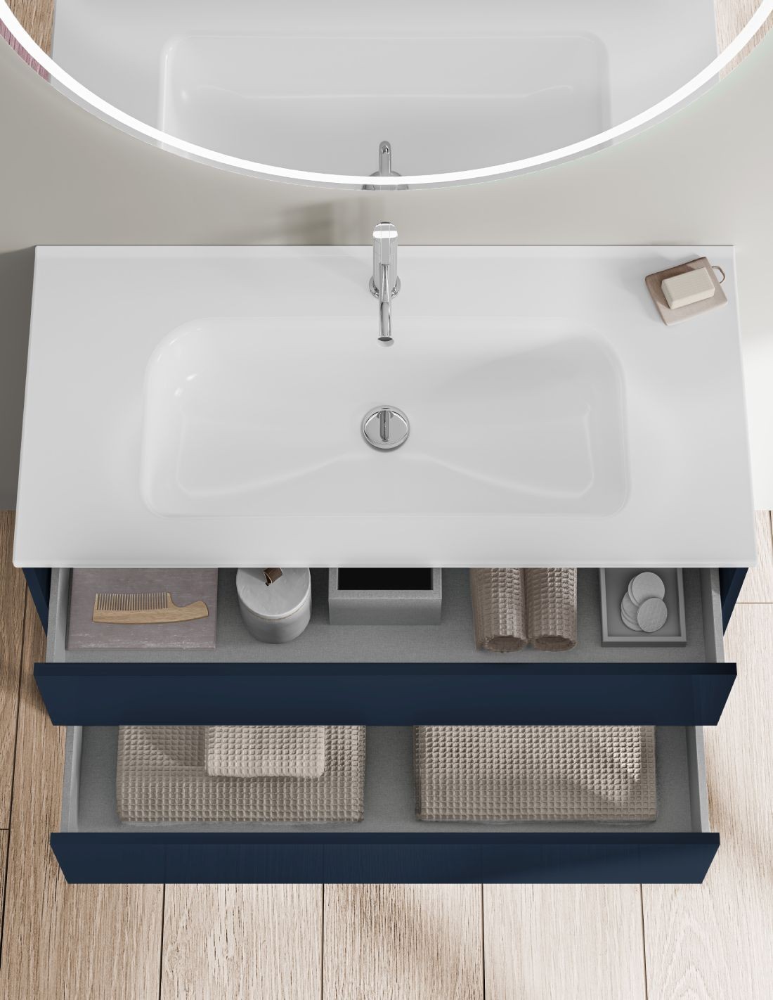Mueble de baño Royo Sansa de 4 cajones suspendidos. Lavabo cerámico incluido. Disponible en 6 acabados. ¡Conócelo!