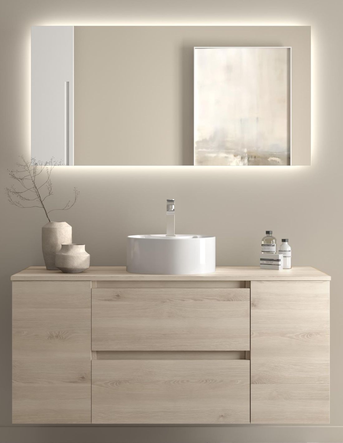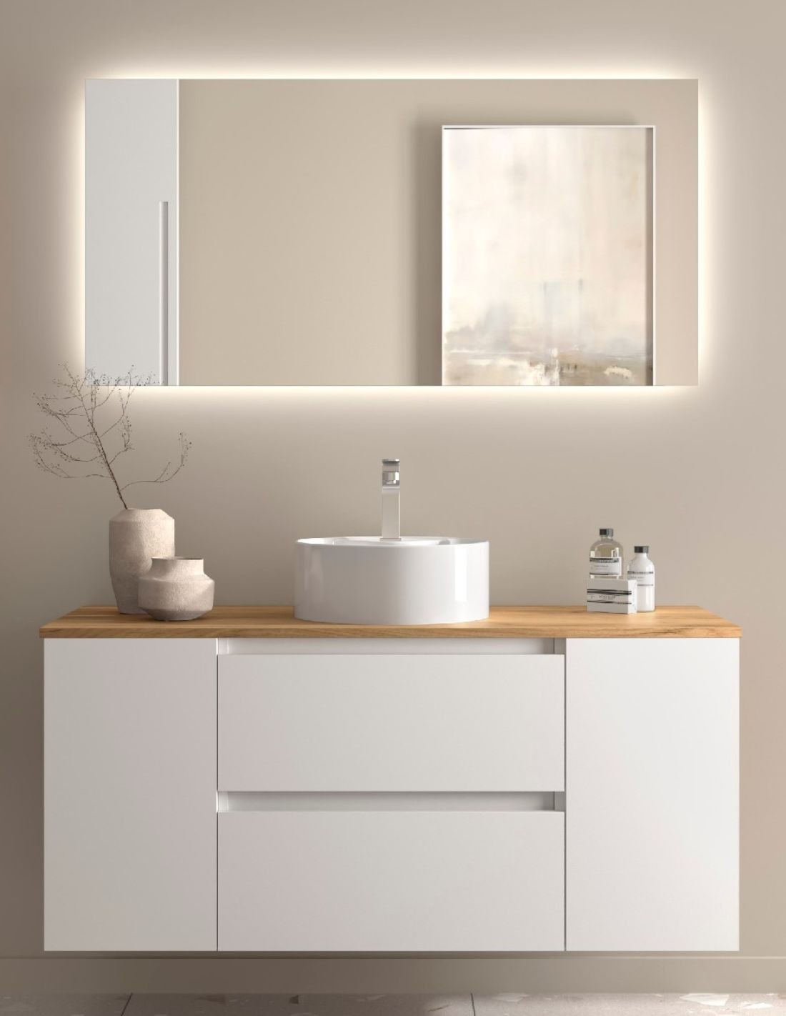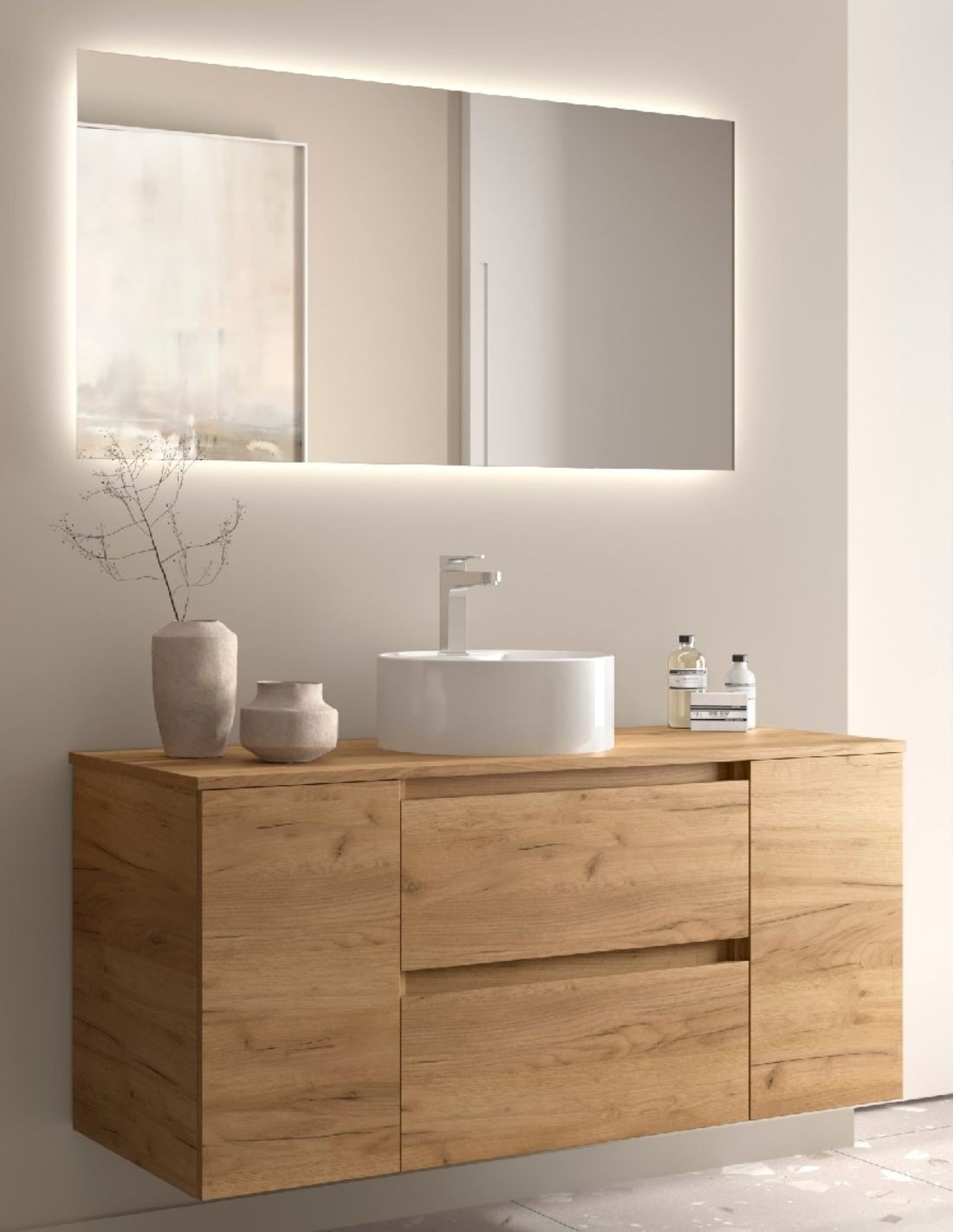 Mueble baño sobre encimera 120 cm. 2 puertas + 2 cajones modelo BEQUIA de Salgar.
