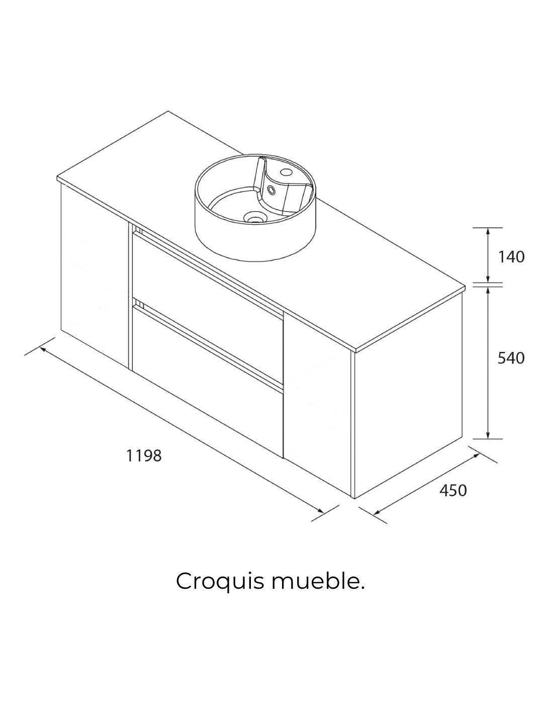 Características principales del mueble baño sobre encimera 120 cm. 2 puertas + 2 cajones: