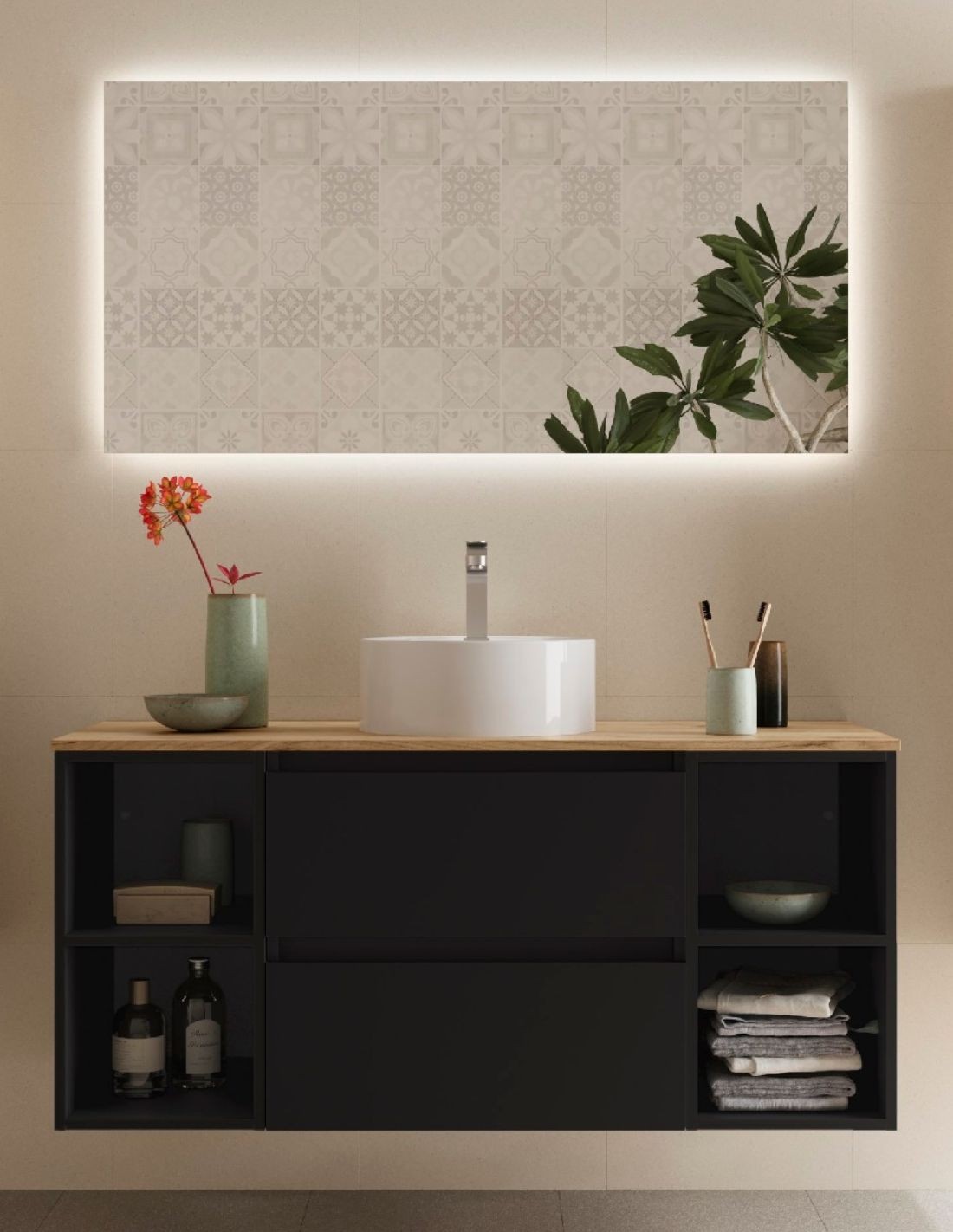 - Incluido LAVABO CERÁMICA de diseño exclusivo integrado o sobre encimera.