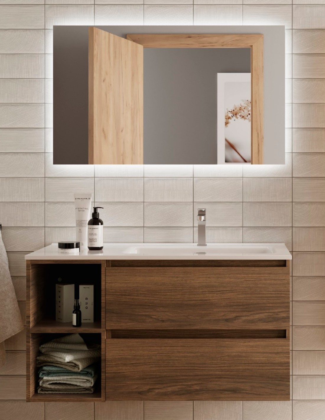 Mueble baño 2 cajones + 2 huecos Nogal modelo BEQUIA de Salgar.